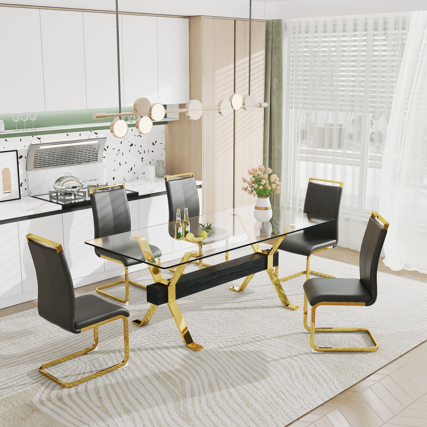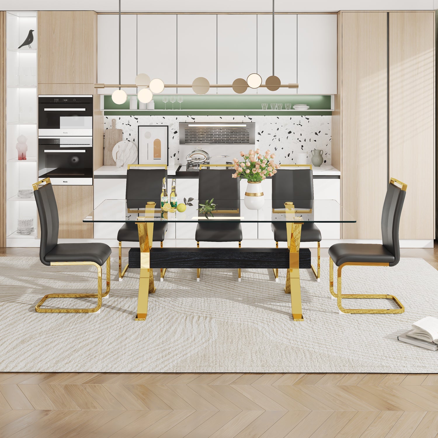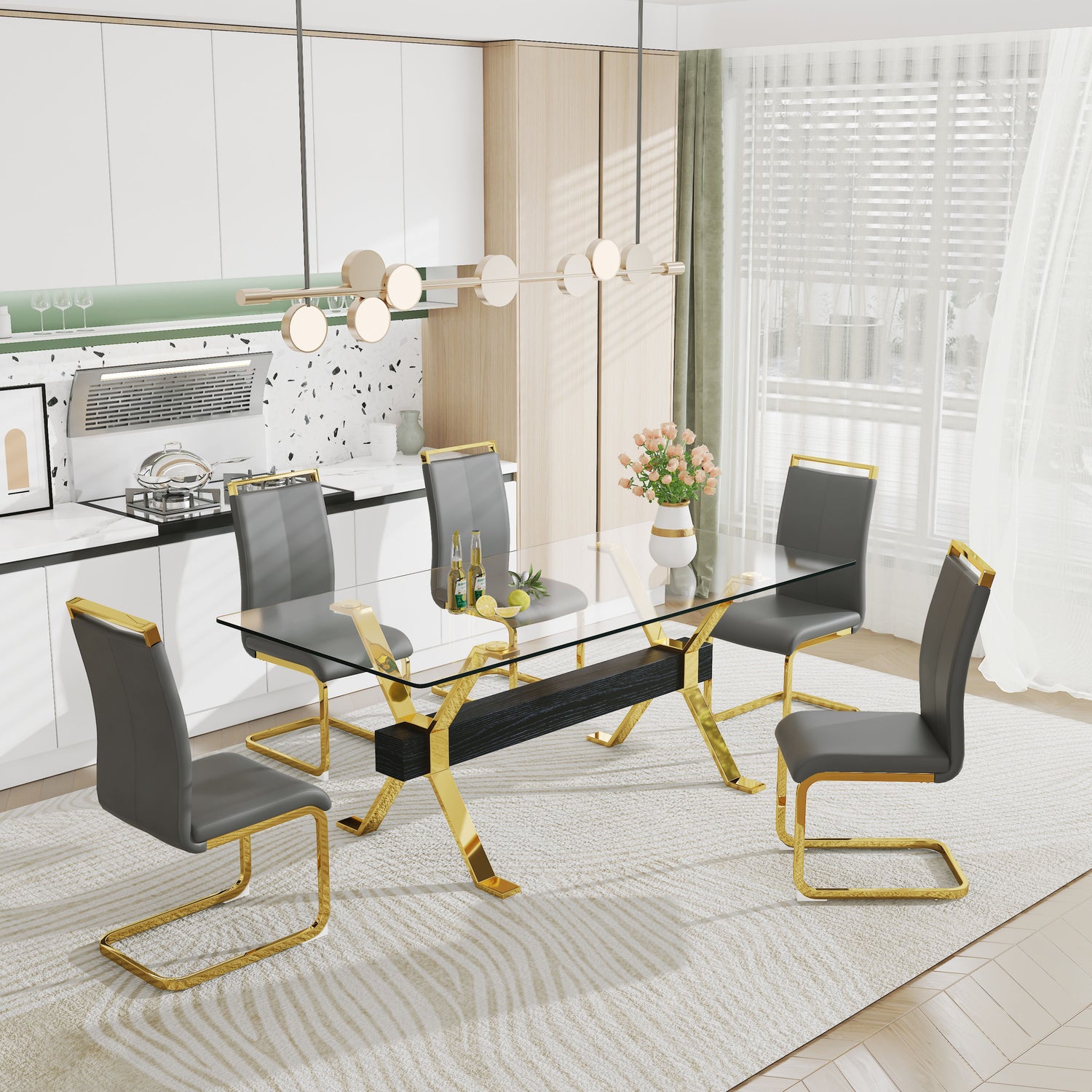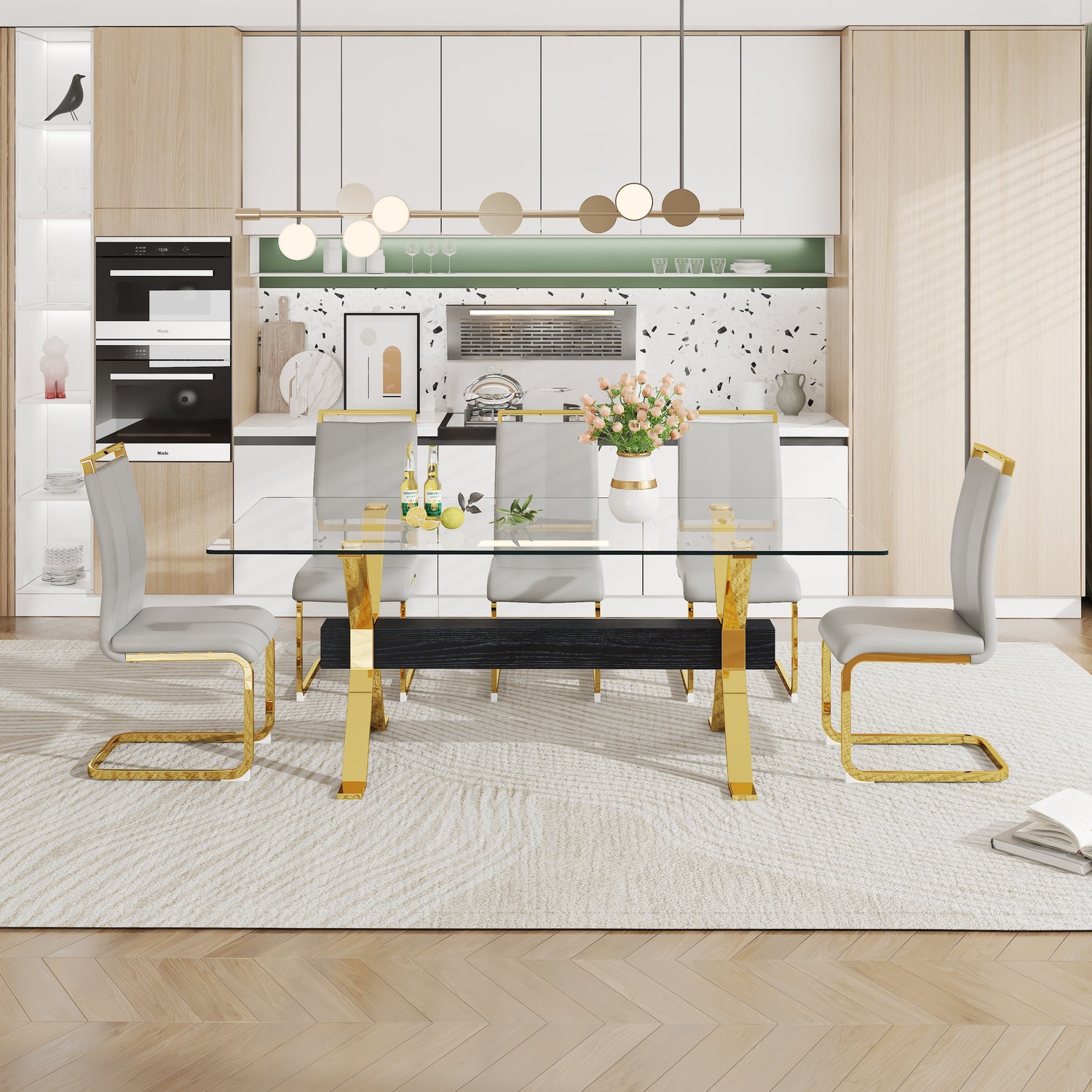Dining table Modern tempered glass dining table Large modern office desk - Transparent + Glass is backordered and will ship as soon as it is back in stock.