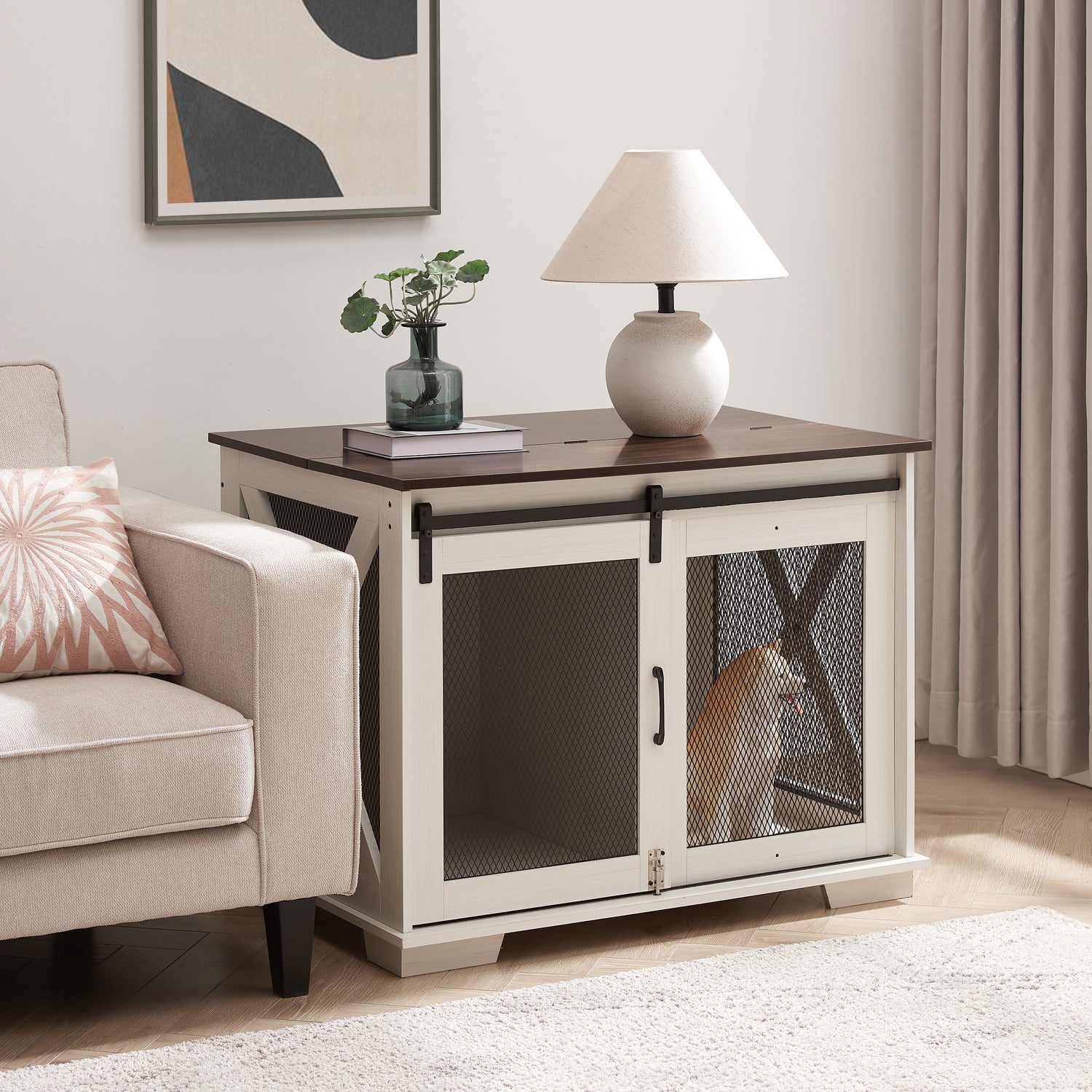 Farm kennel Flat noodles furniture with sliding barn door, farm wooden kennel end table, dog house with removable partition - White is backordered and will ship as soon as it is back in stock.