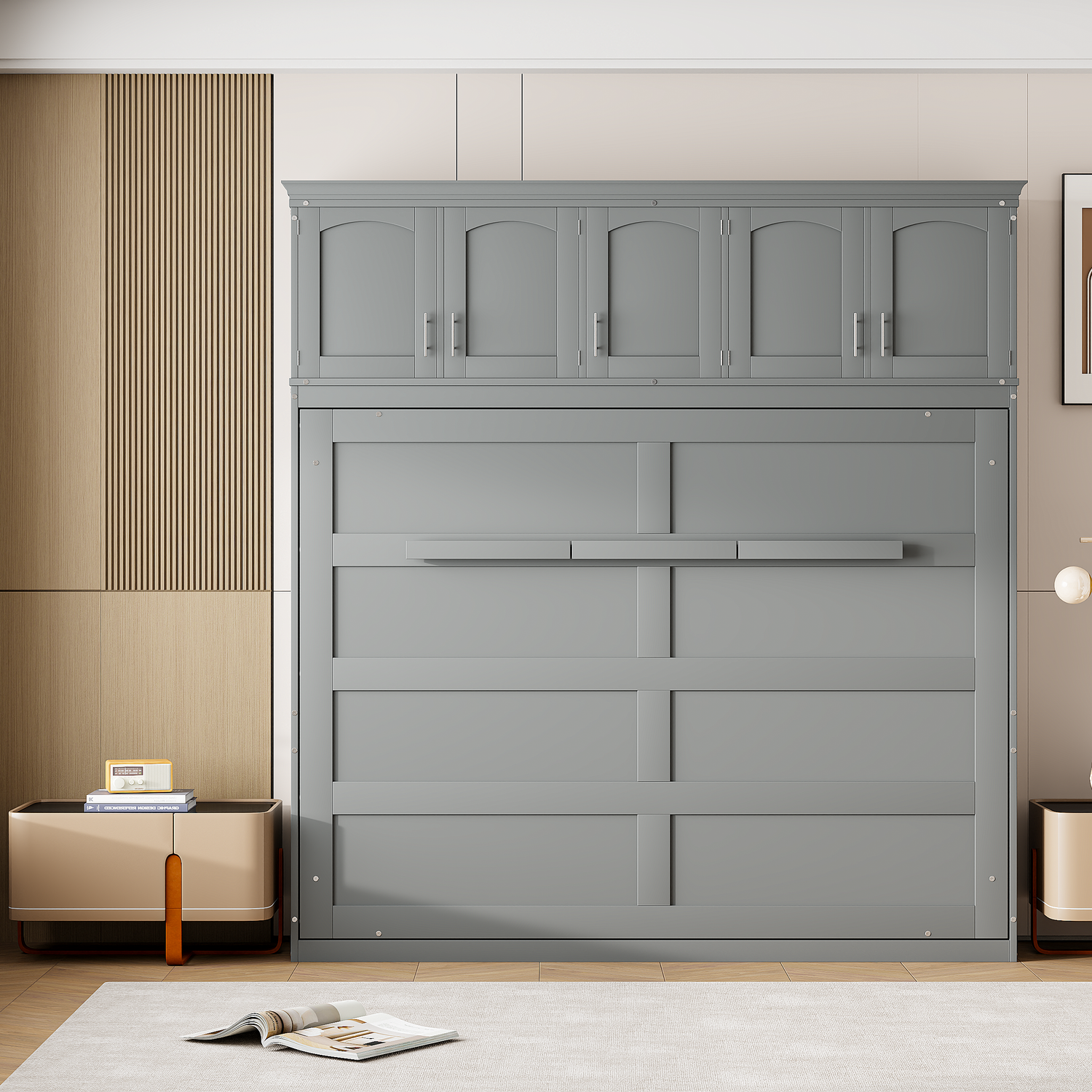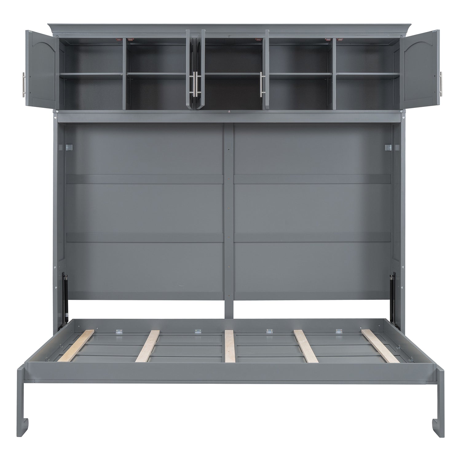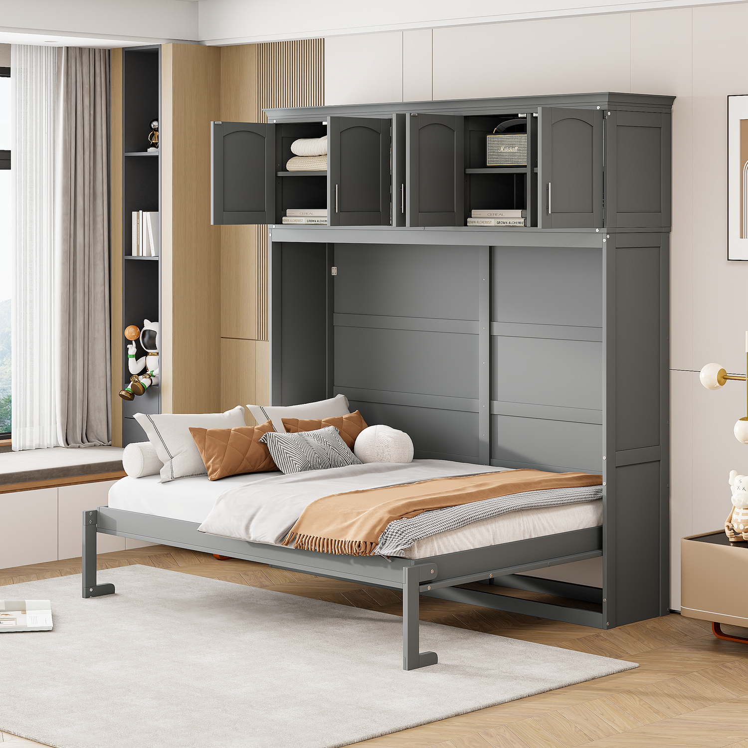 Full Size Murphy Bed Wall Bed with Top Cabinets,Gray