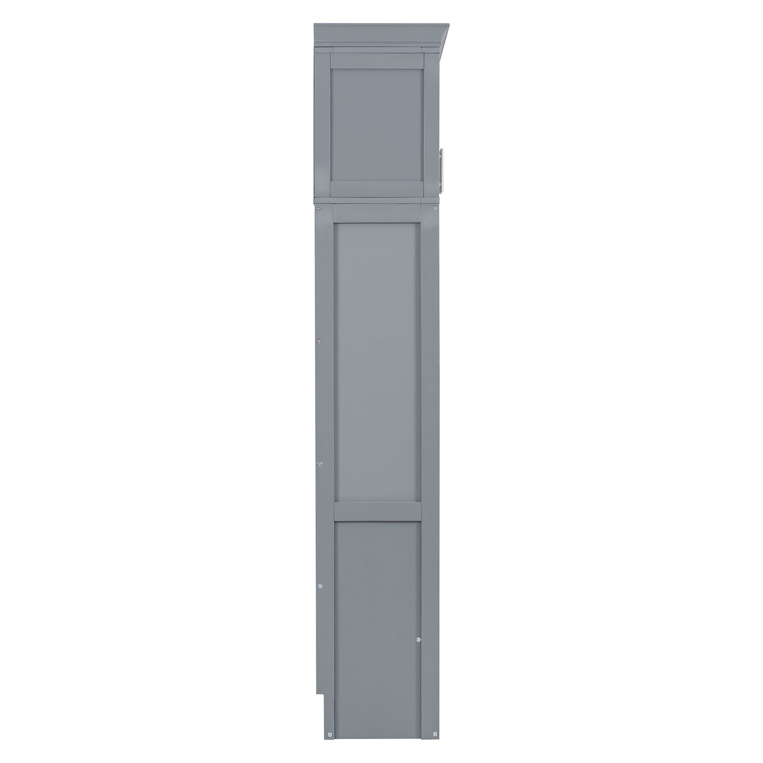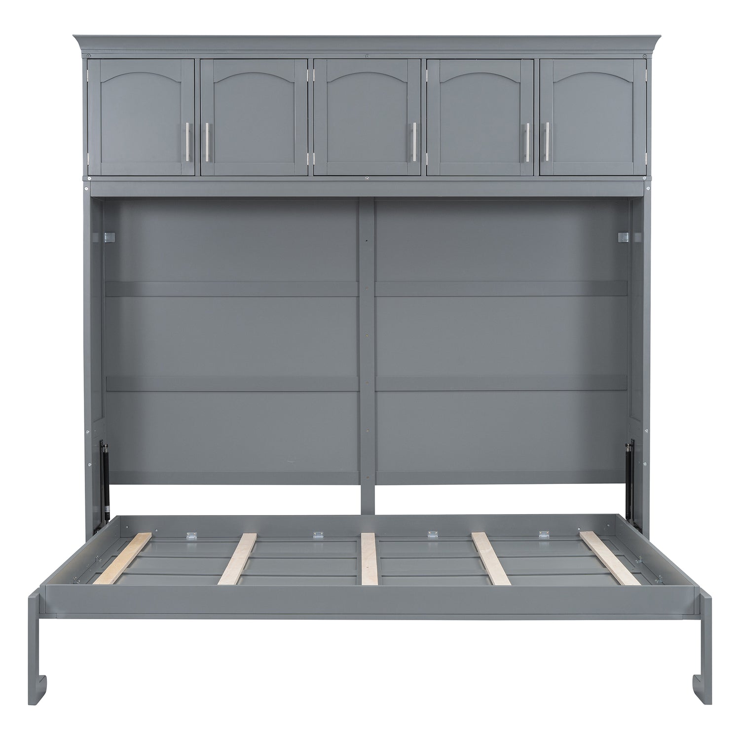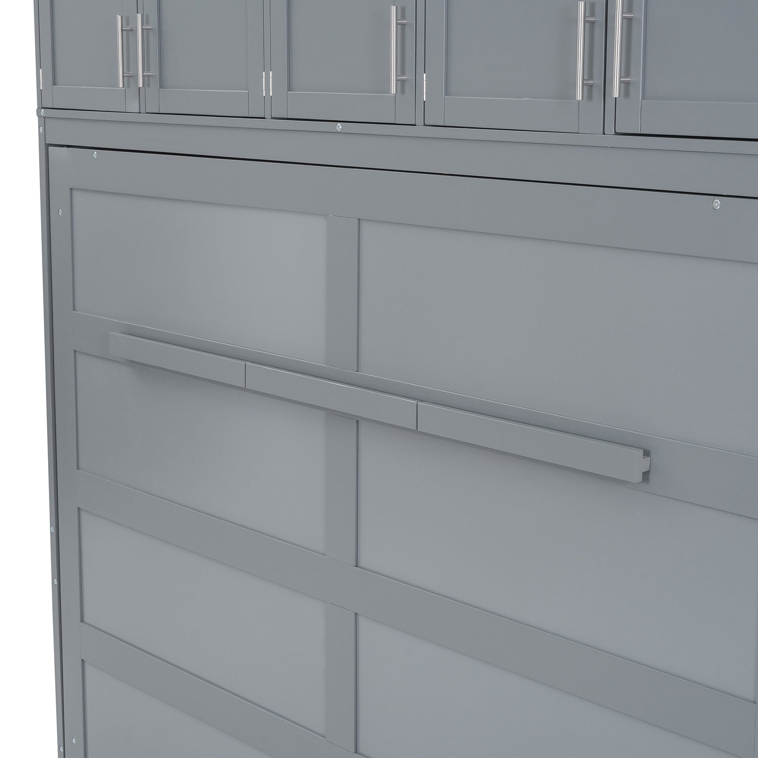 Full Size Murphy Bed Wall Bed with Top Cabinets,Gray