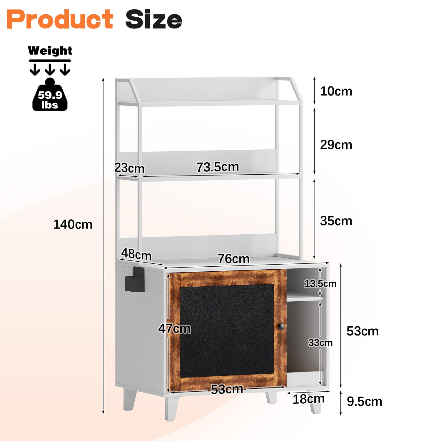 4,Large enough cat house space - The cat house measures 30.3 inches (L) x 19.68 inches (W) x 55 inches (H), which can accommodate cat litter boxes up to 21.25 inches (L) x 18.5 inches (W). The cat litter has an extra large internal space, and the box furniture is large enough for even a big fat cat. The cabinet door opens and closes smoothly, making it easy to scoop poop every day and take out the cat litter box