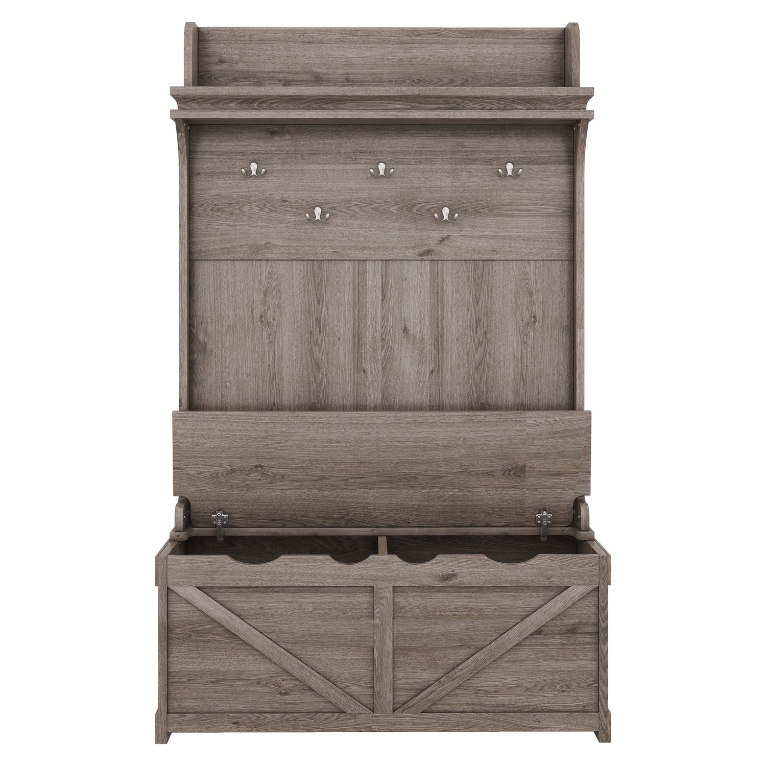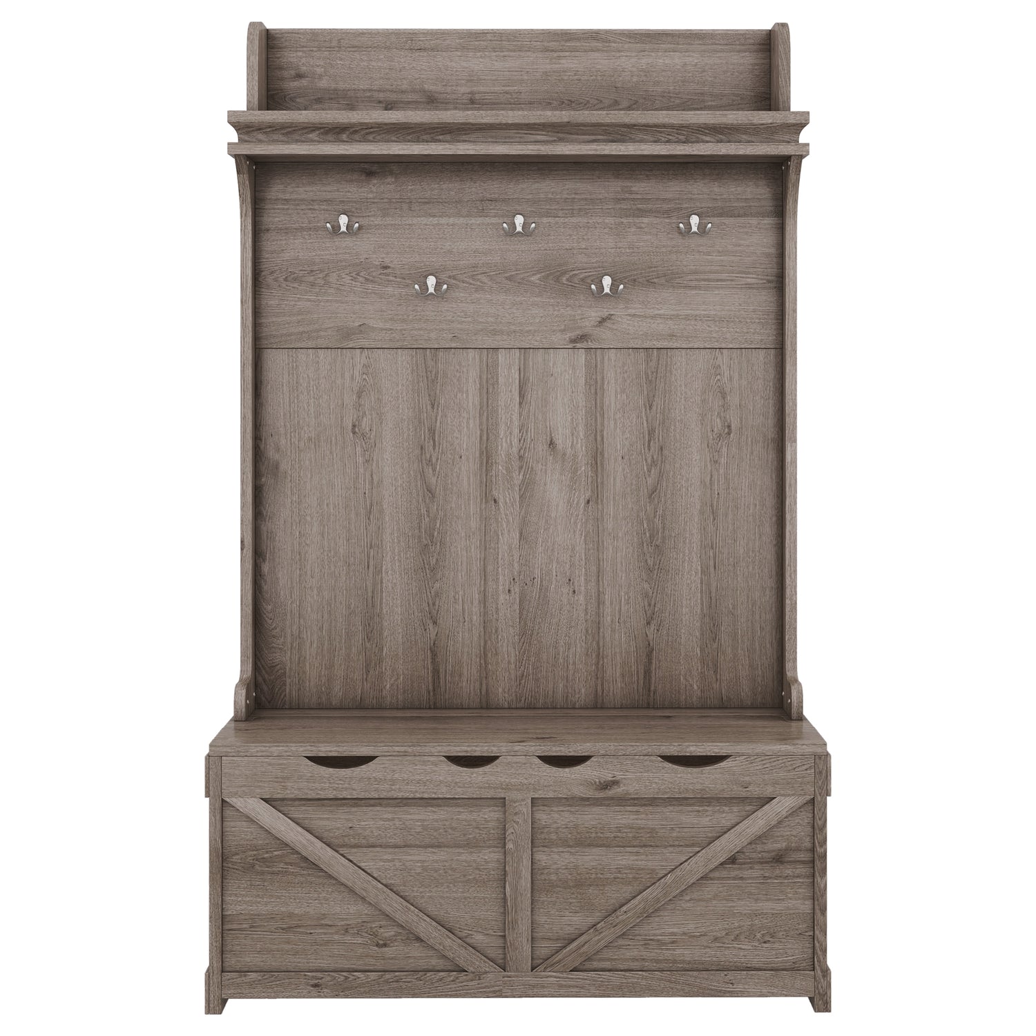 Organize and decorate your entryway with this hall tree, which will provide plenty of storage space for your entryway items. Featuring a stylish design, this hall tree is suitable for all décor and will add elegance to your home.