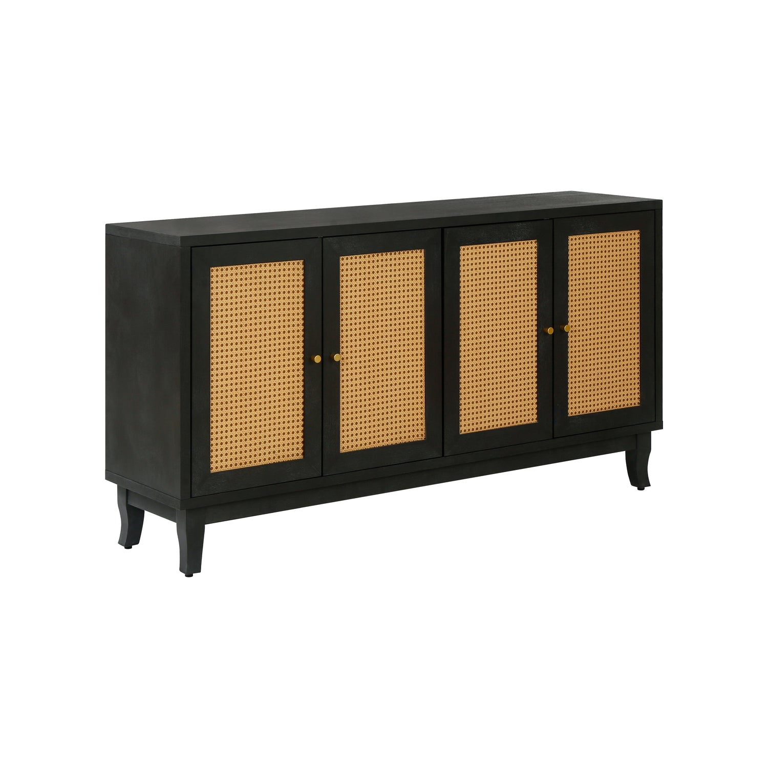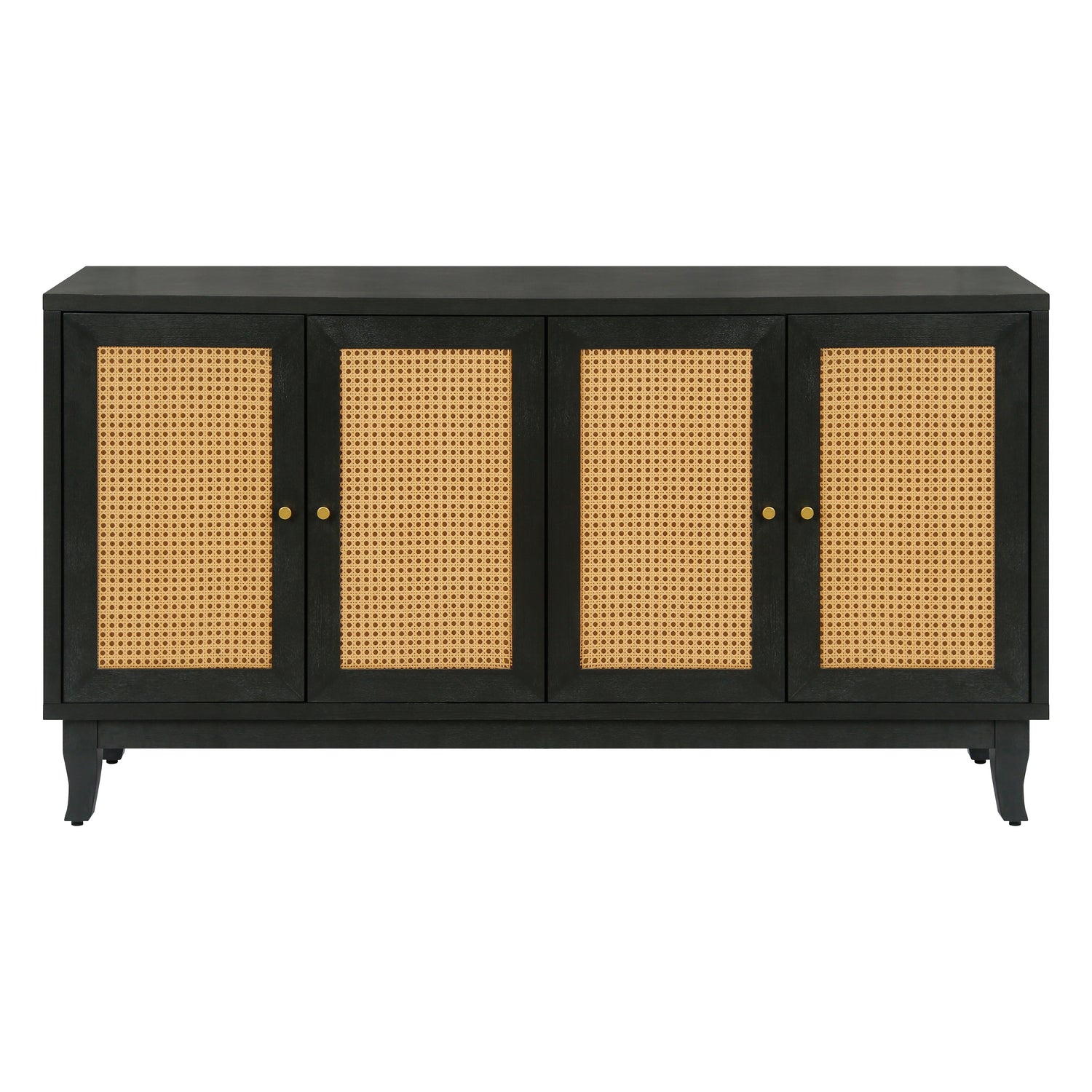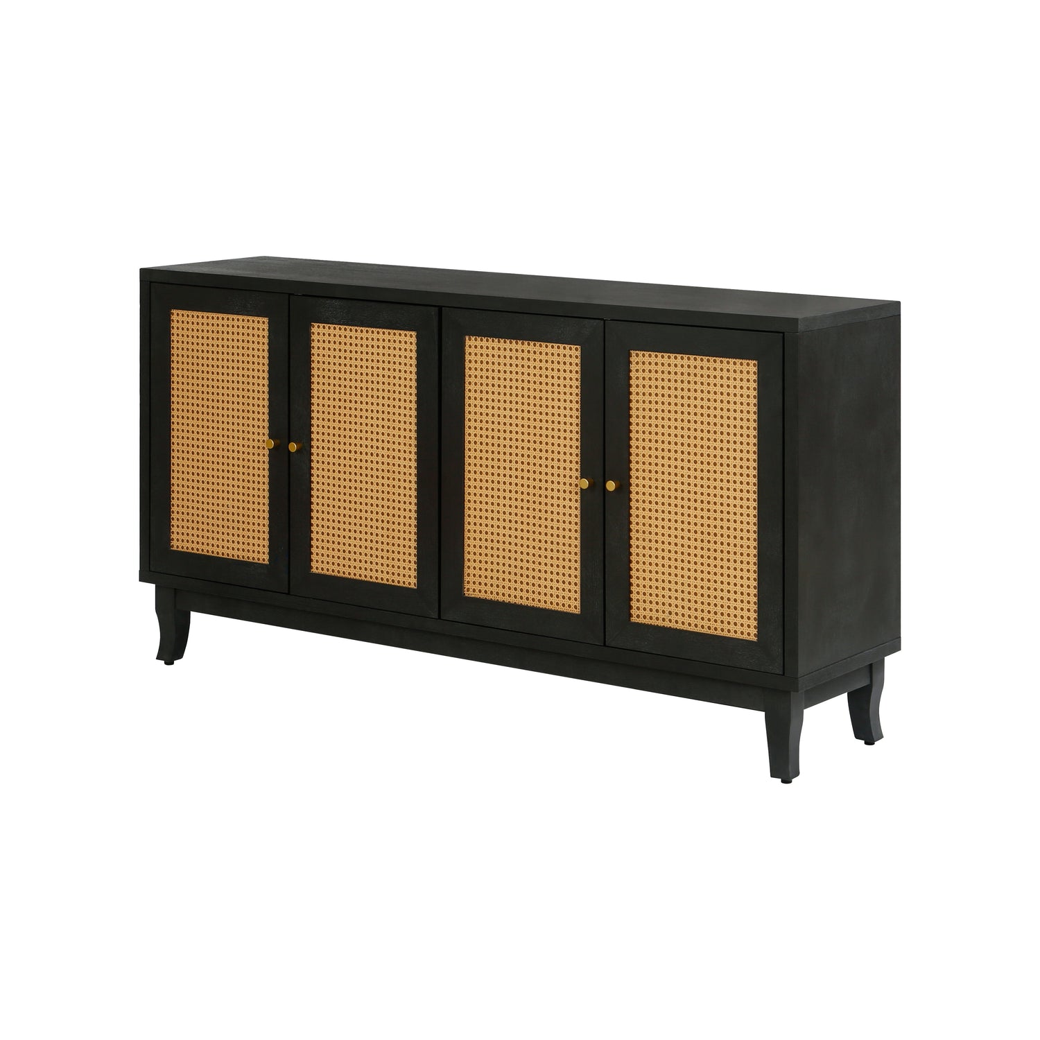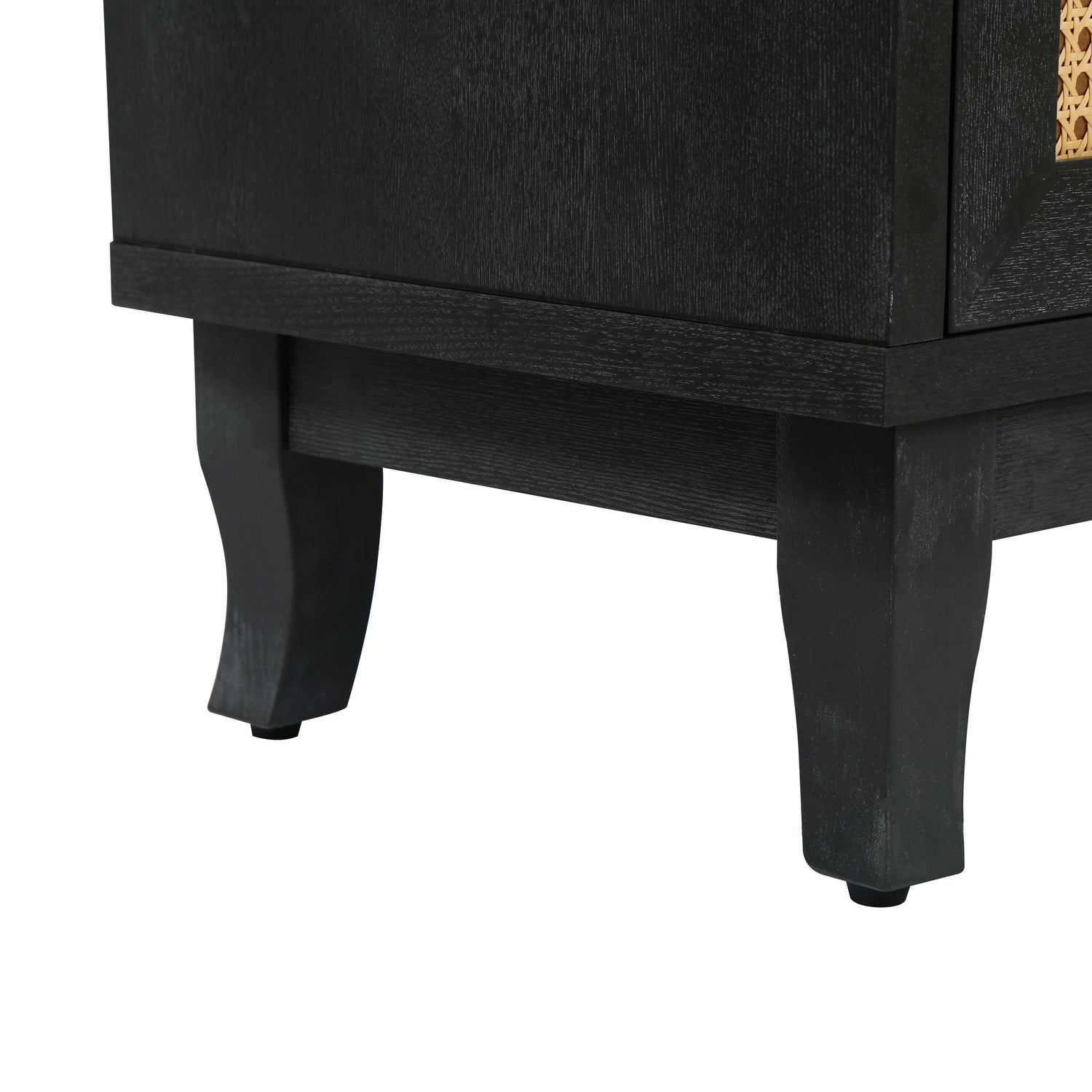 Handcrafted Premium Grain Panels Rattan Sideboard Buffer Cabinet Accent Storage Cabinet With 4 Rattan Doors BLACK