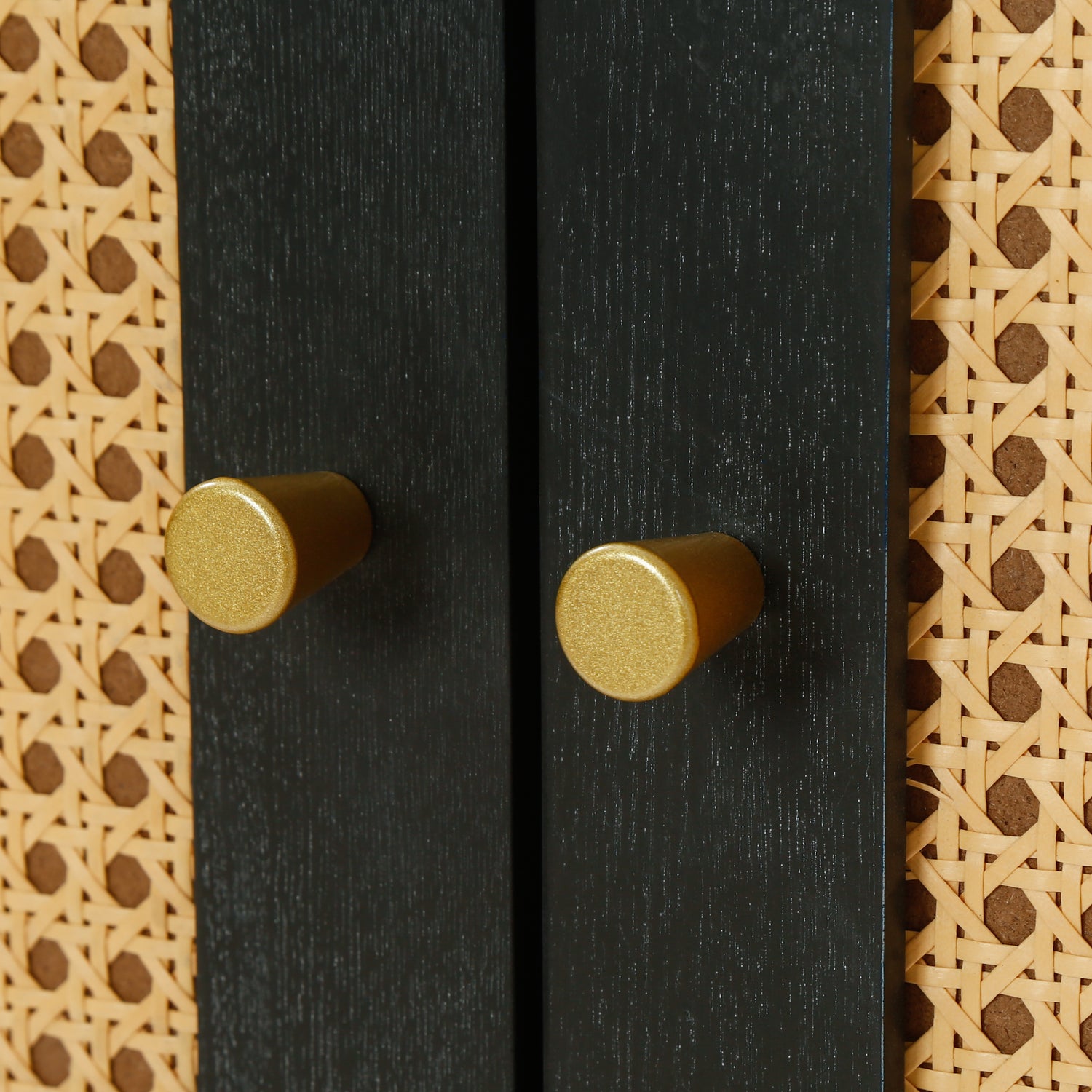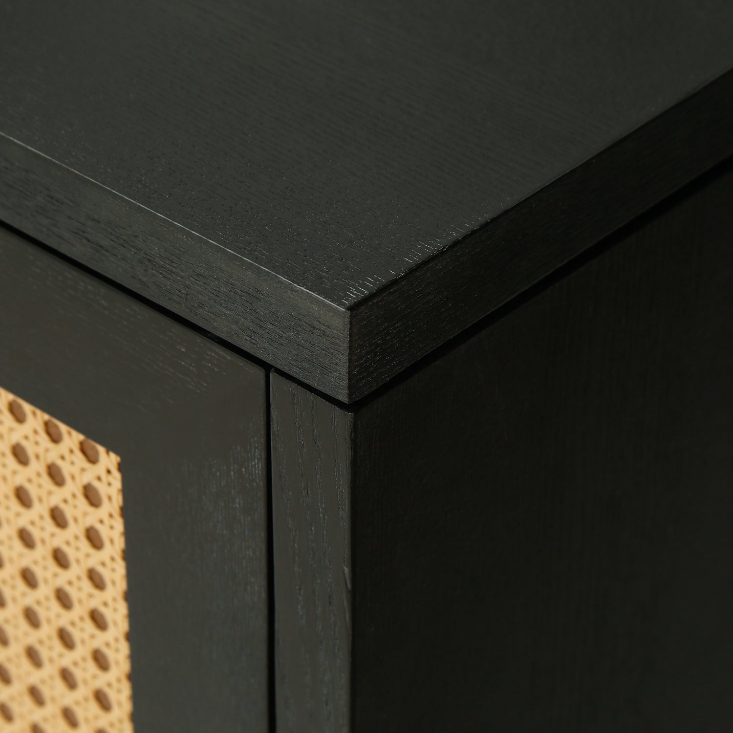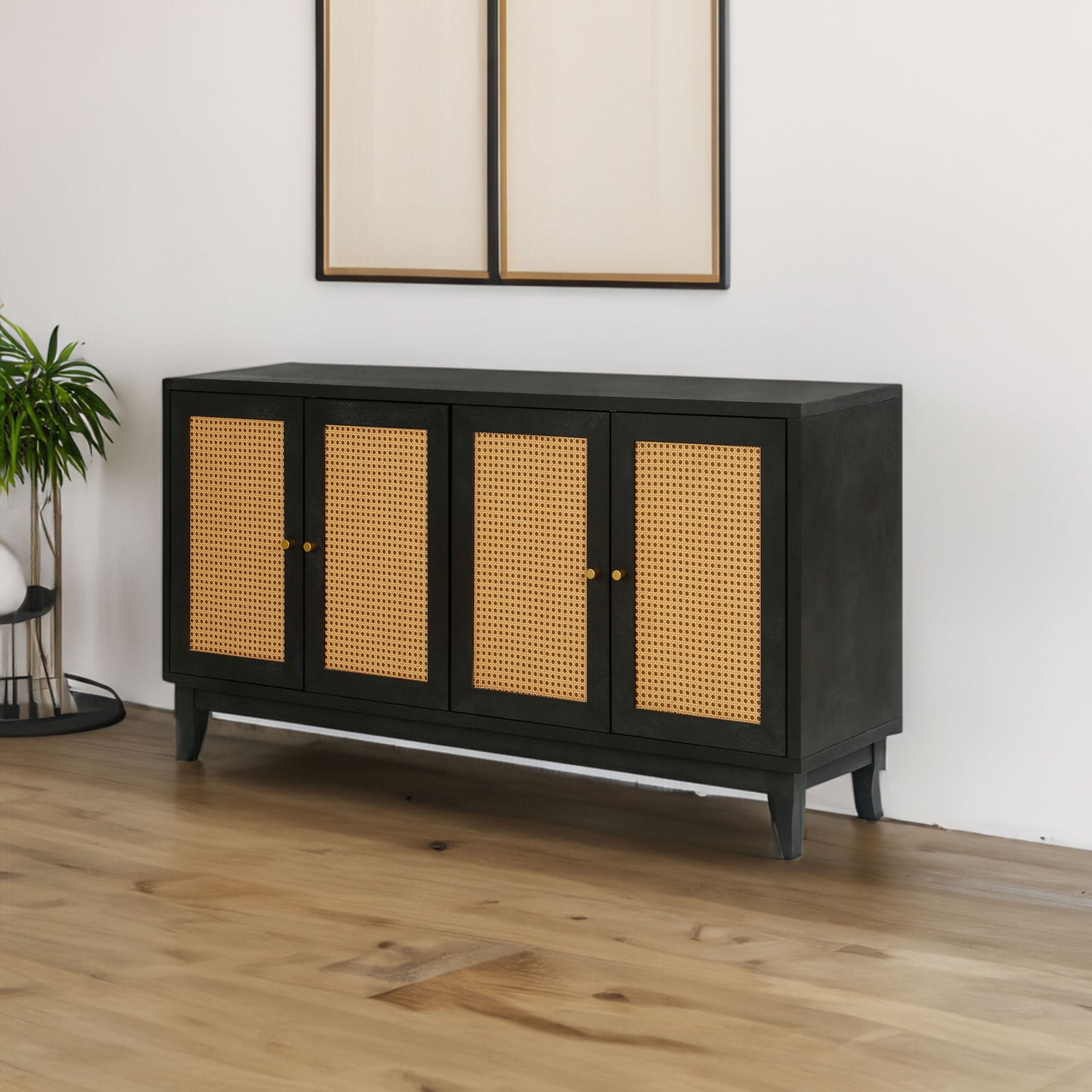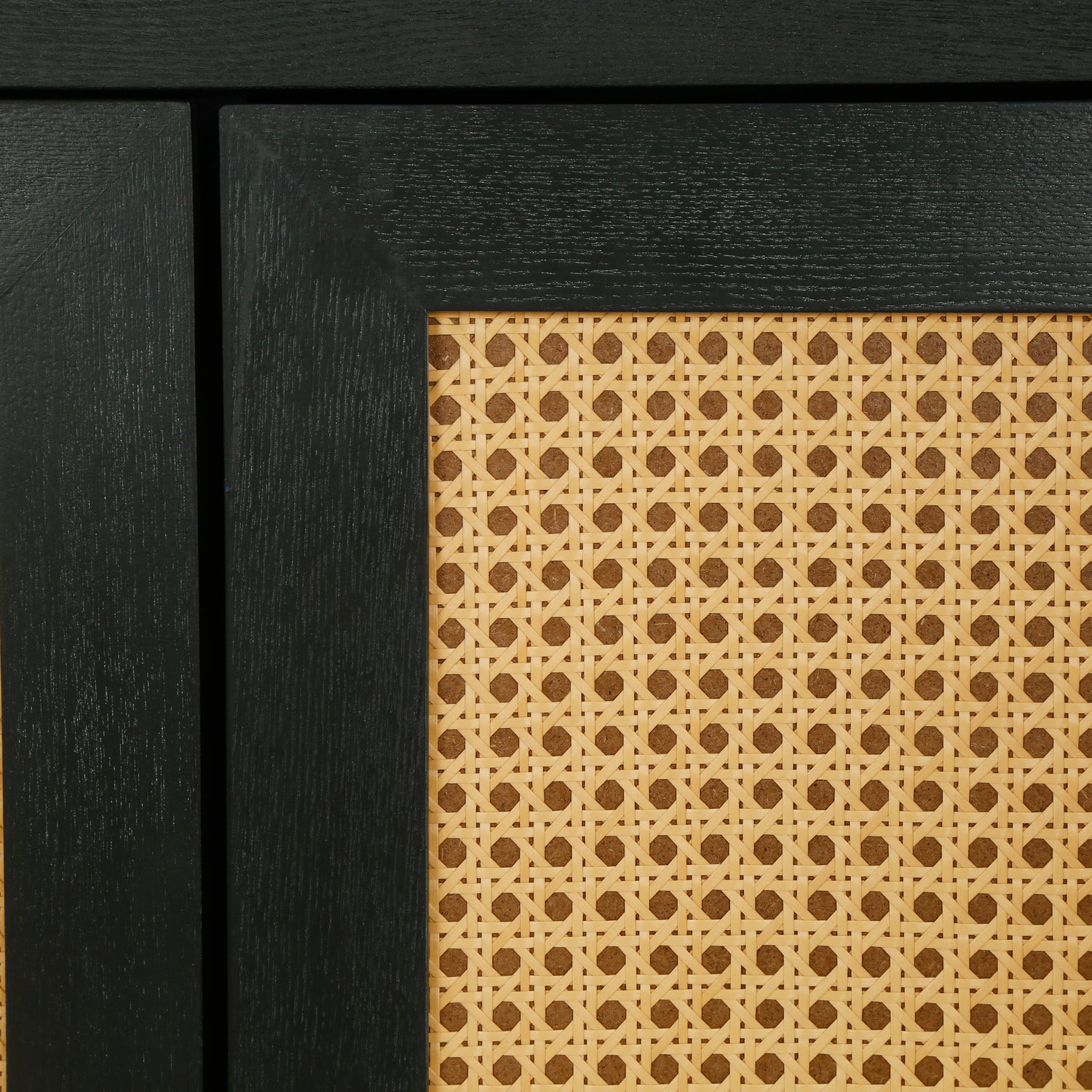 Handcrafted Premium Grain Panels Rattan Sideboard Buffer Cabinet Accent Storage Cabinet With 4 Rattan Doors BLACK