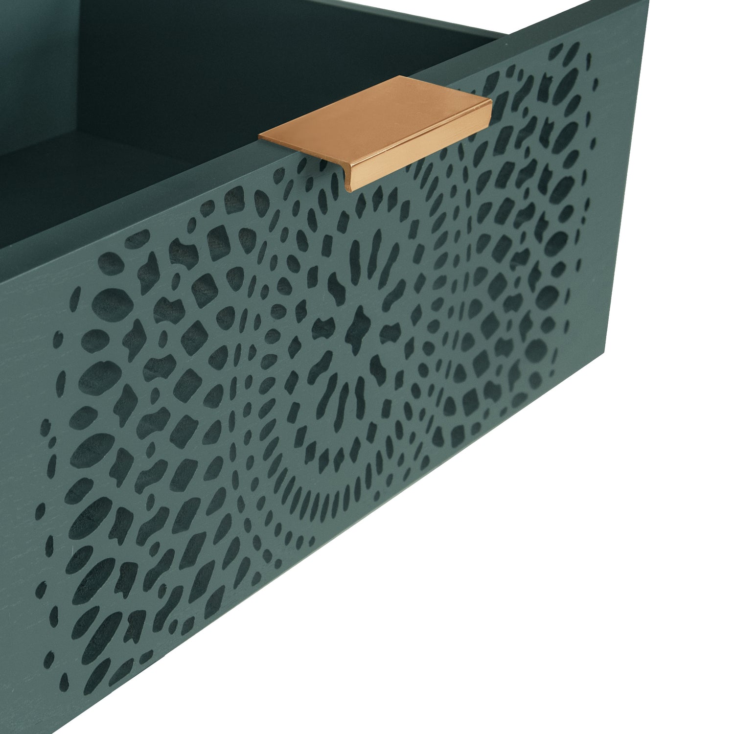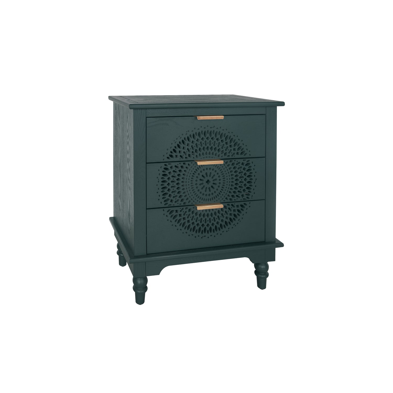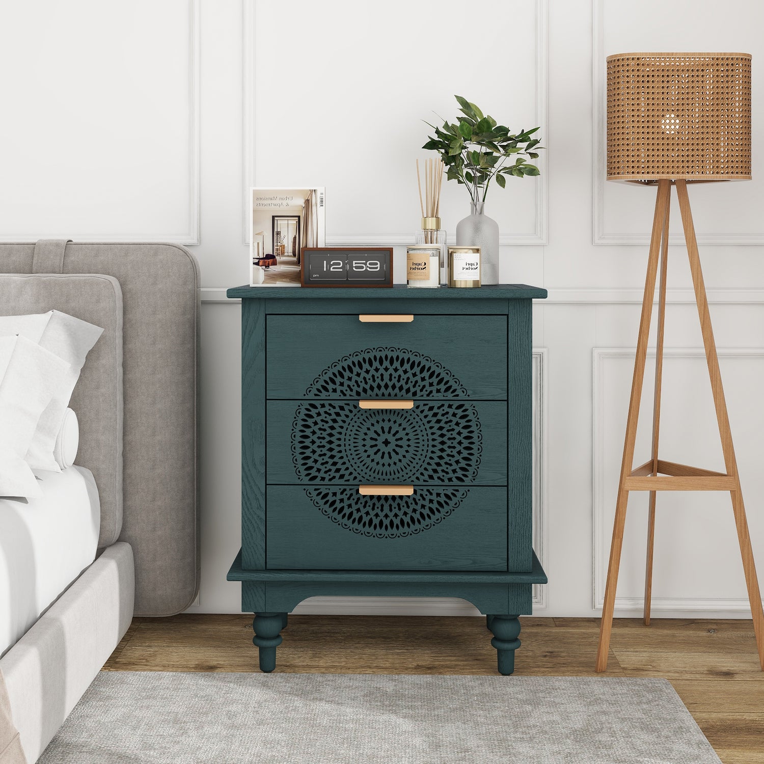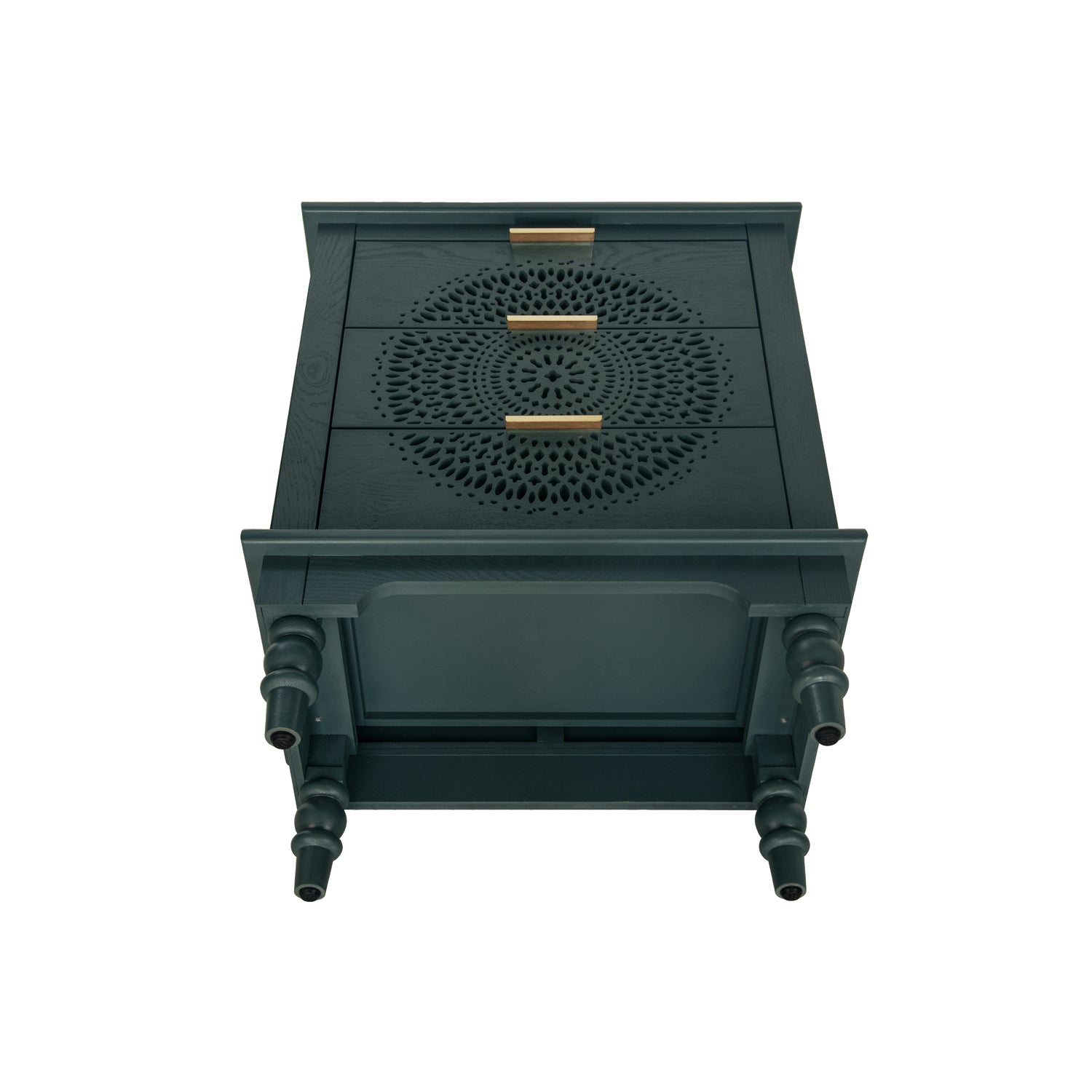 Hollow-Carved 3 Drawer Dresser Storage Chest with Metal Handles For Living Room Bedroom - Blackish Green is backordered and will ship as soon as it is back in stock.
