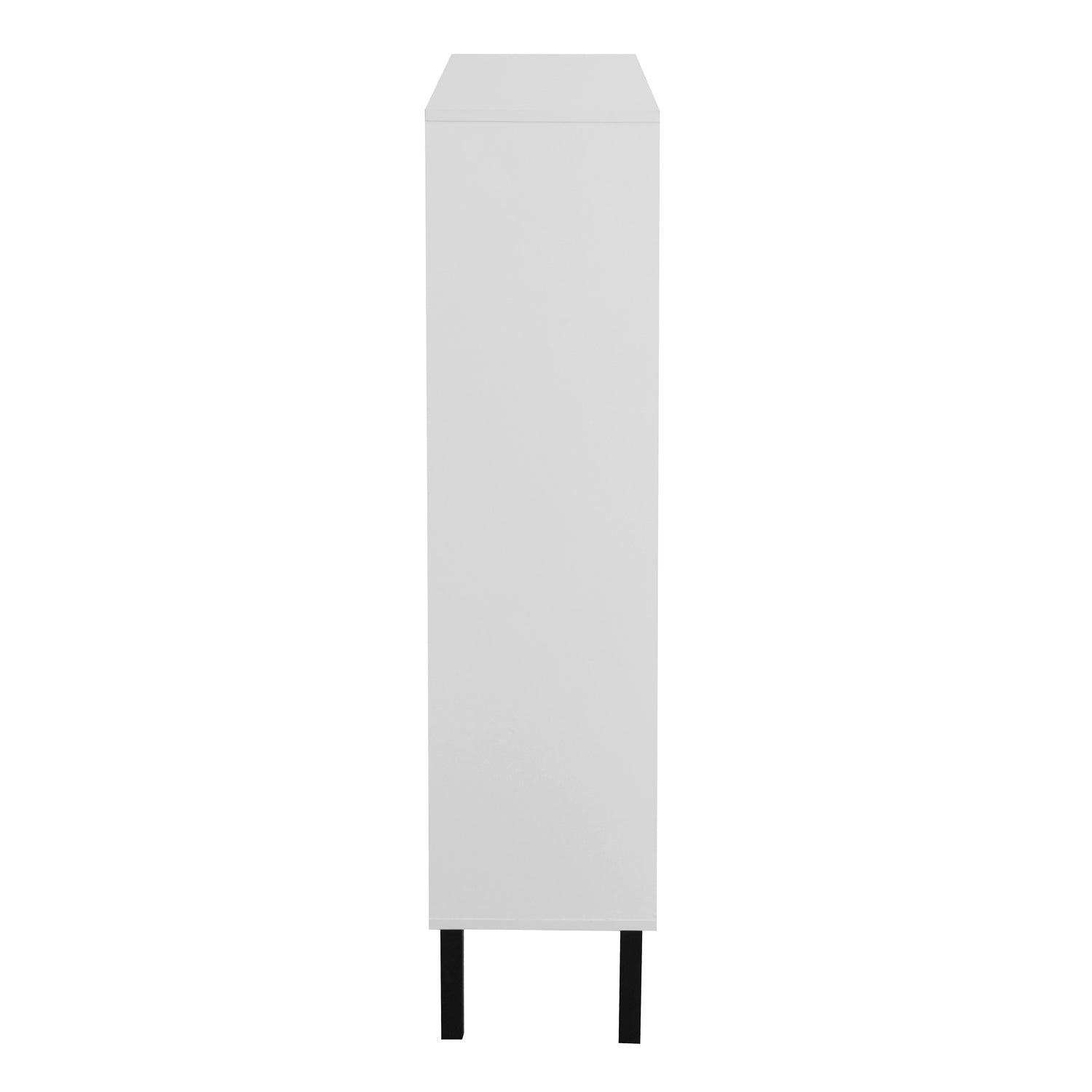 Independent shoe rack storage box with drawers and metal legs, modern shoe cabinet with 2 flippable drawers - White +Particle Board +3-4 Spaces is backordered and will ship as soon as it is back in stock.