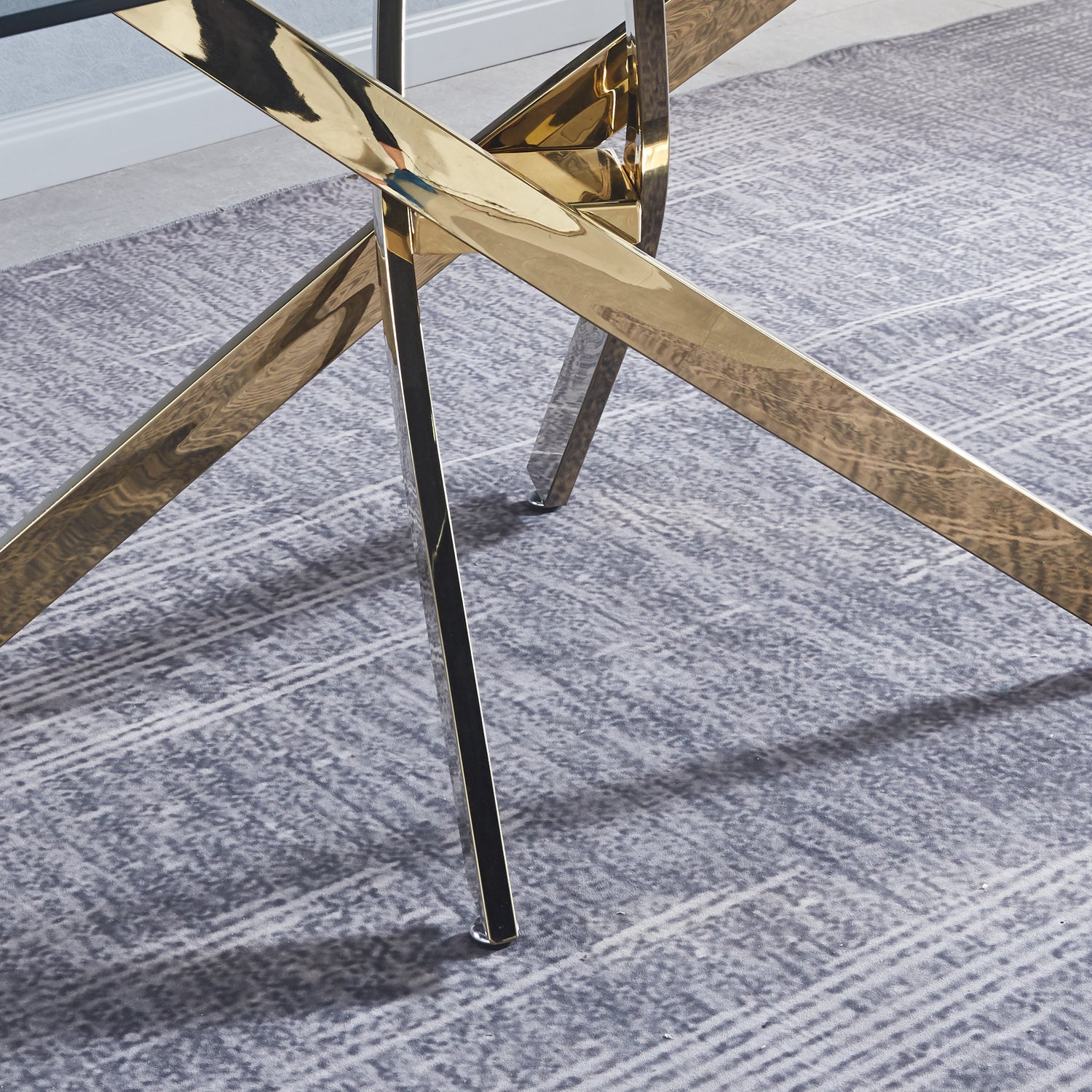 • Rectangular dining table of modern design with fixed 0.39" tempered glass top and polished edges. Its original chrome-plated stainless steel base is one of the key elements to highlight in its design. A perfect table to bring light and avant-garde to your kitchen, living room, or dining room.