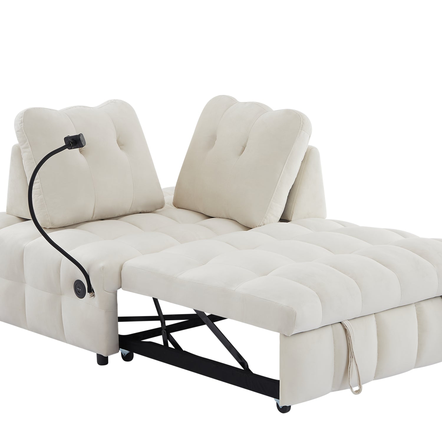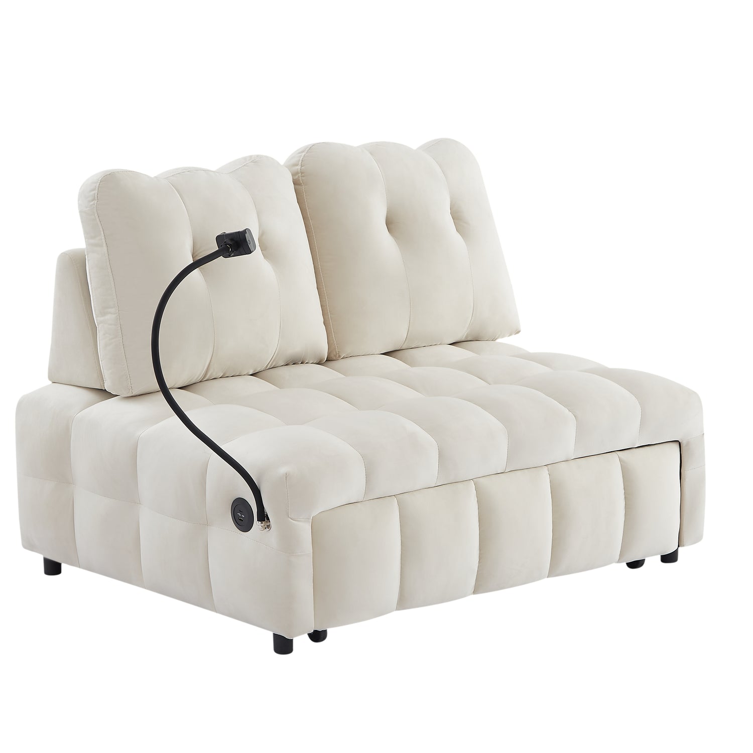 Modern sofa velvet pull-out bed,Independently removable backrest, have USB port and swivel phone stand ,beige