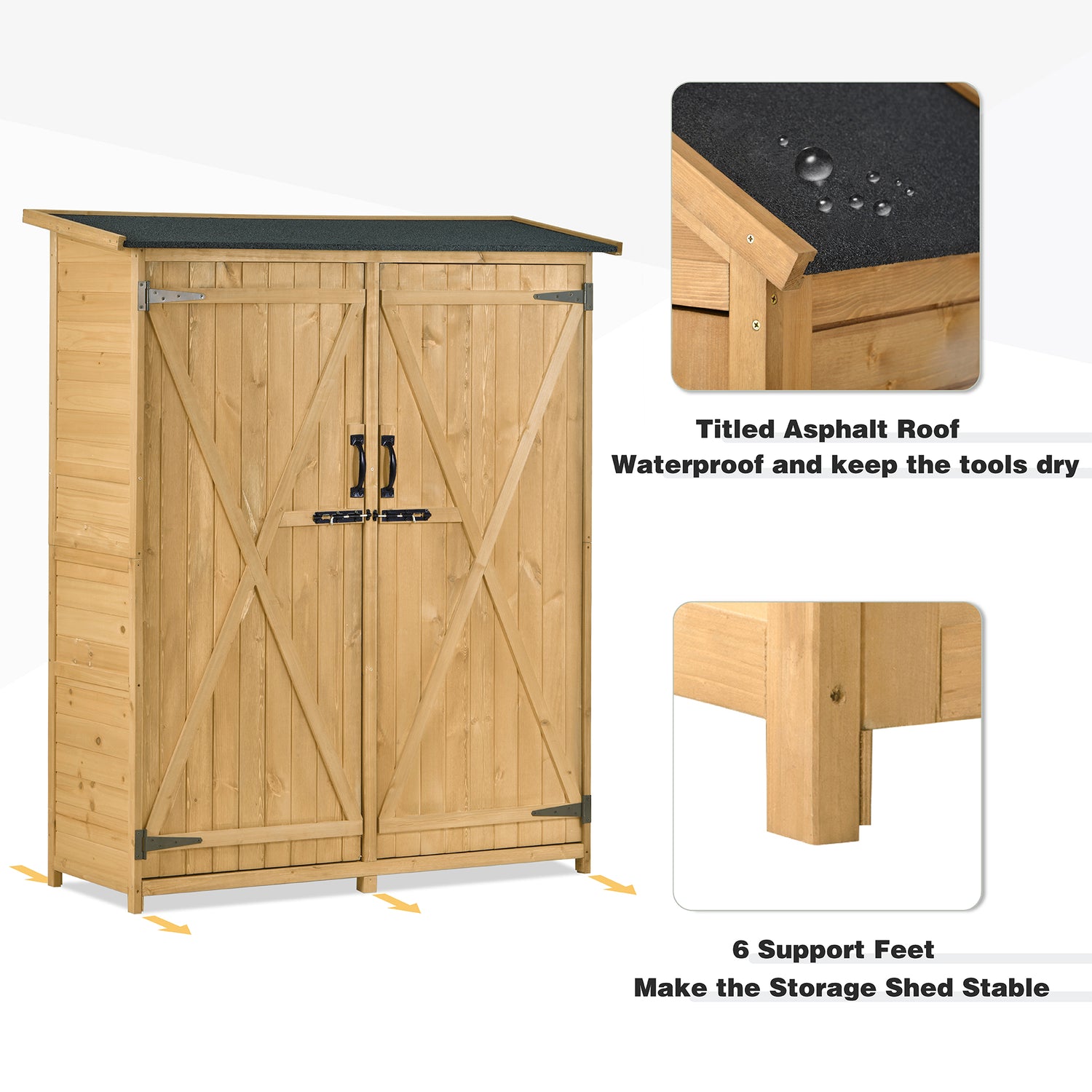 Outdoor 5.3ft Hx4.6ft L Wood Storage Shed Tool Organizer,Garden Shed, Storage Cabinet with Waterproof Asphalt Roof Natural