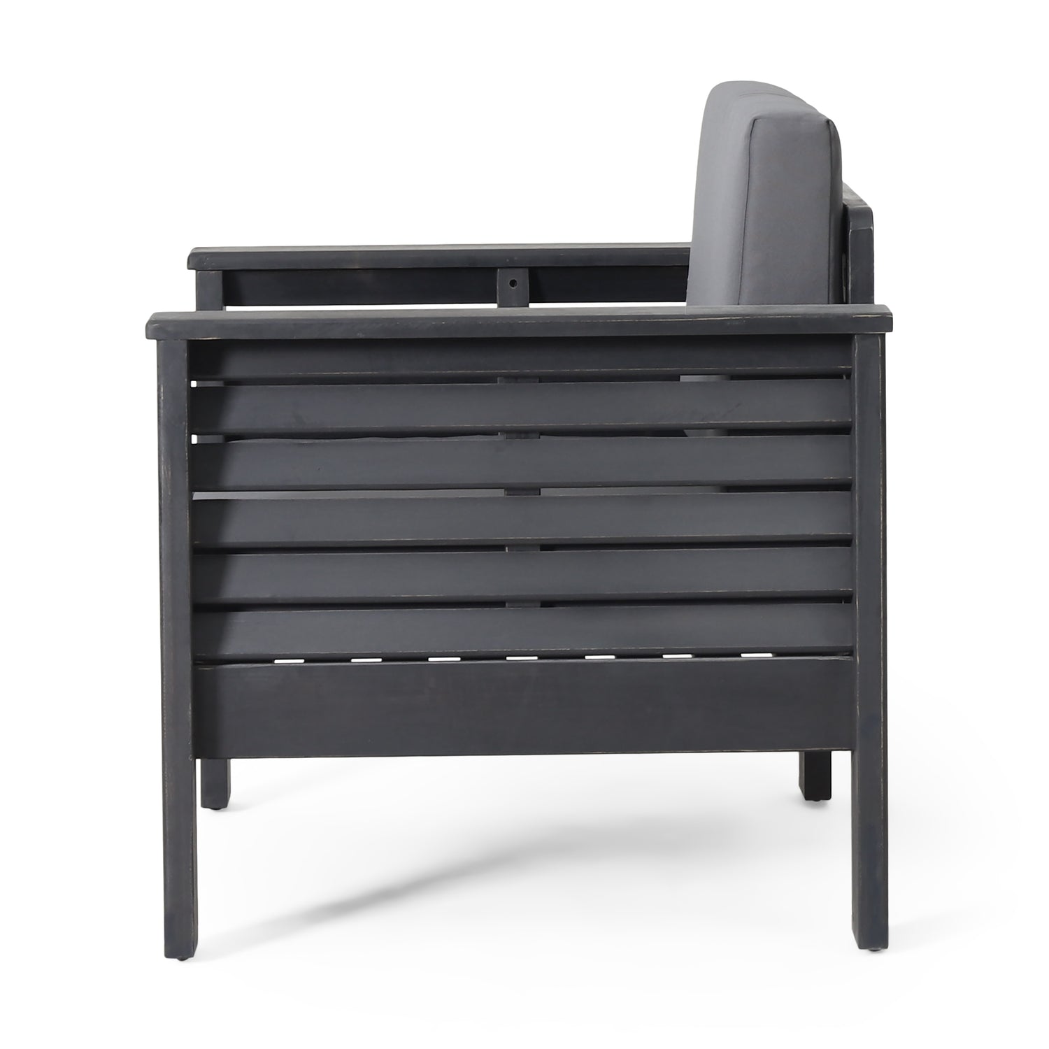 Outdoor Acacia Wood Club Chairs with Cushions, Dark Gray, 27.75"D x 32"W x 27.75"H - Grev + Acacia Wood +Foam is backordered and will ship as soon as it is back in stock.