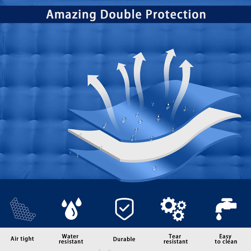 2. Internal Support: Enhanced internal support with multiple airbag supports inside. Max load - bearing 500 kg, won’t collapse when lying, sitting or standing. Paired with waterproof TPU nylon fabric, works well in tough conditions, fits tent and sleeping bag.