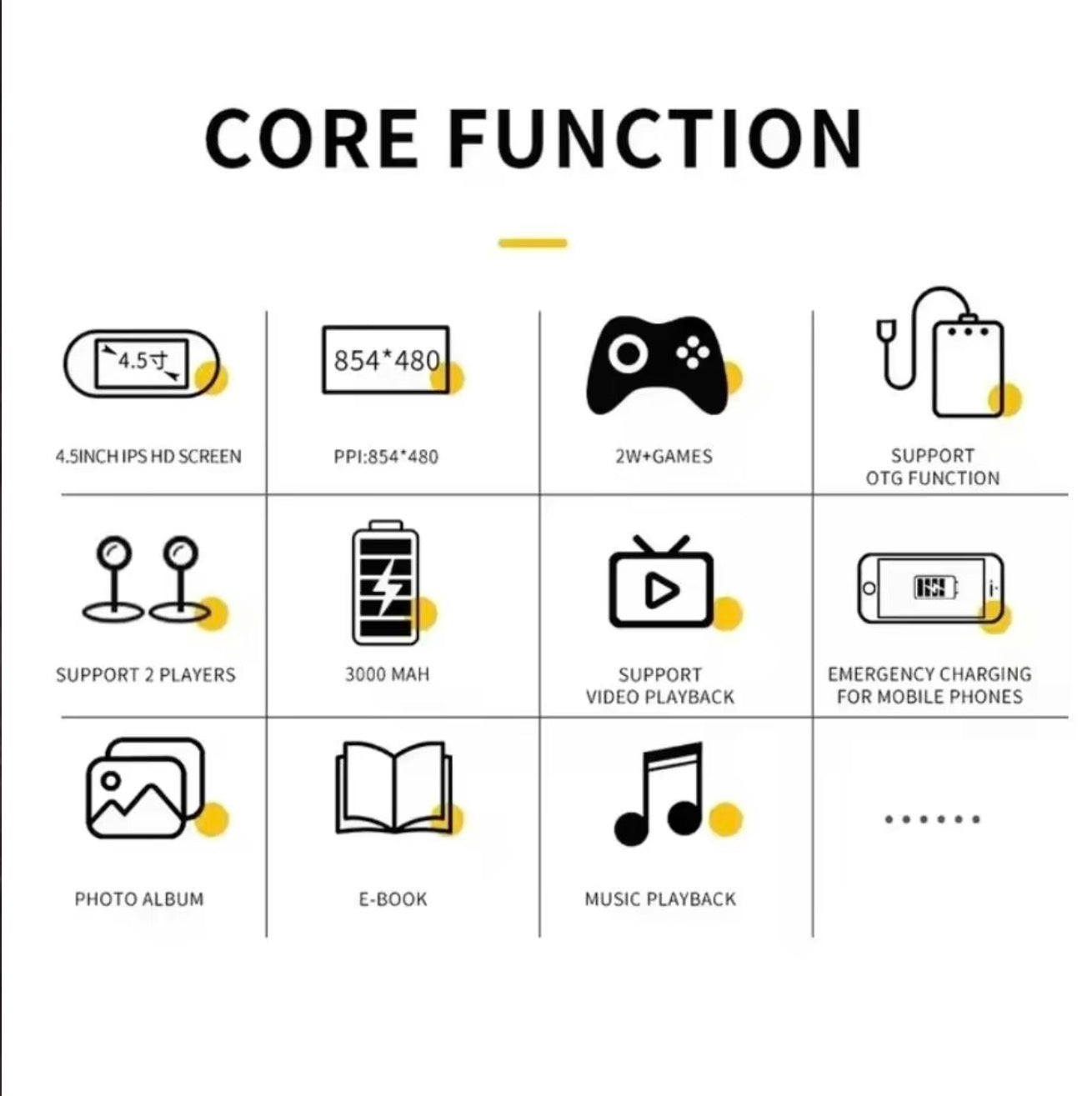 Experience the golden age of gaming with the PixelWave SF3000, a portable retro handheld console engineered for modern convenience and vintage fun. With a 4.5-inch HD IPS display, built-in Linux system, and preloaded 64GB TF card, this console supports thousands of games across multiple platforms—making it the ultimate gift for kids, nostalgic gamers, and tech lovers.