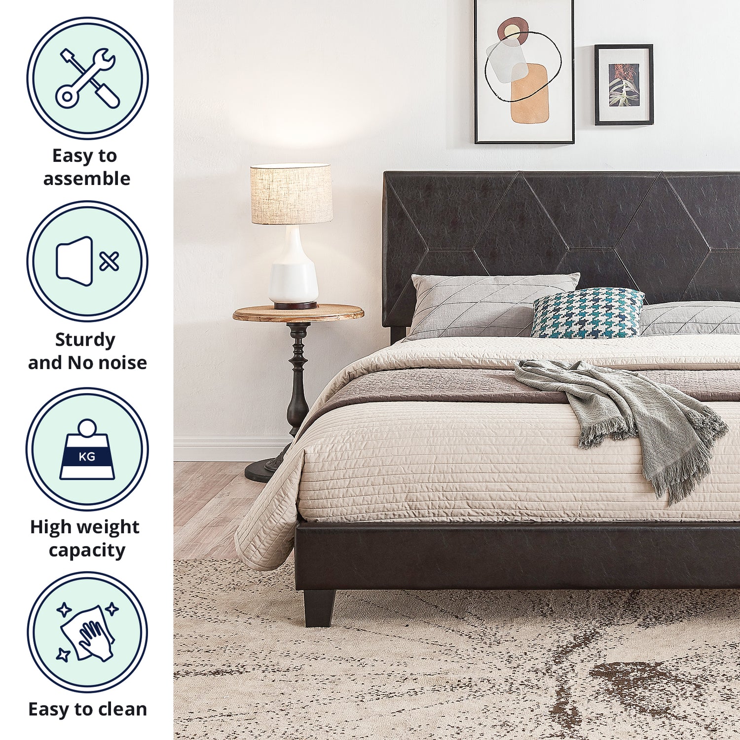 Queen Size Upholstered Platform Bed Frame Wood Slat Support Easy Assembly Black pu