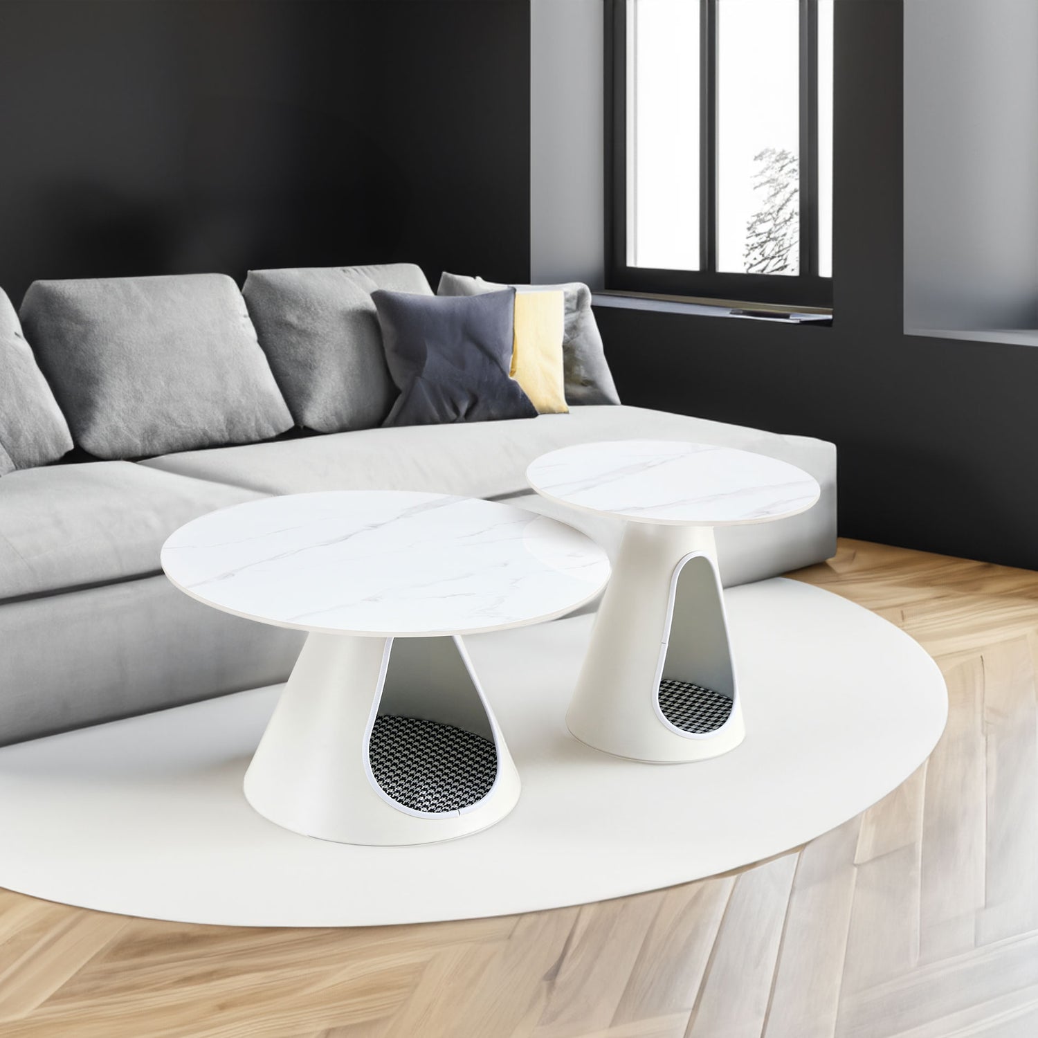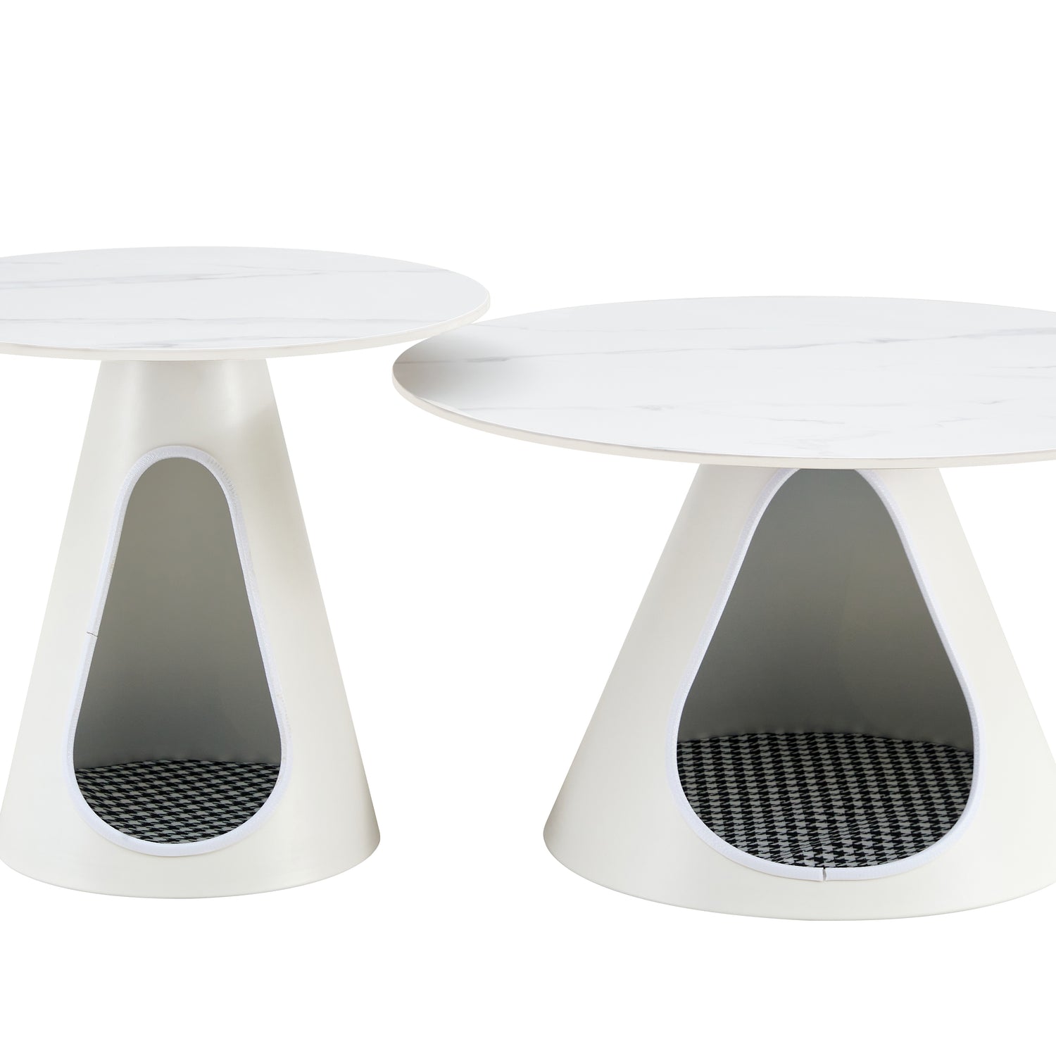 In conclusion, this set of 2 coffee round tables with marble look tops and steel bases, complete with integrated cat beds, is a must-have for pet owners looking to combine style, functionality, and comfort in one seamless package.