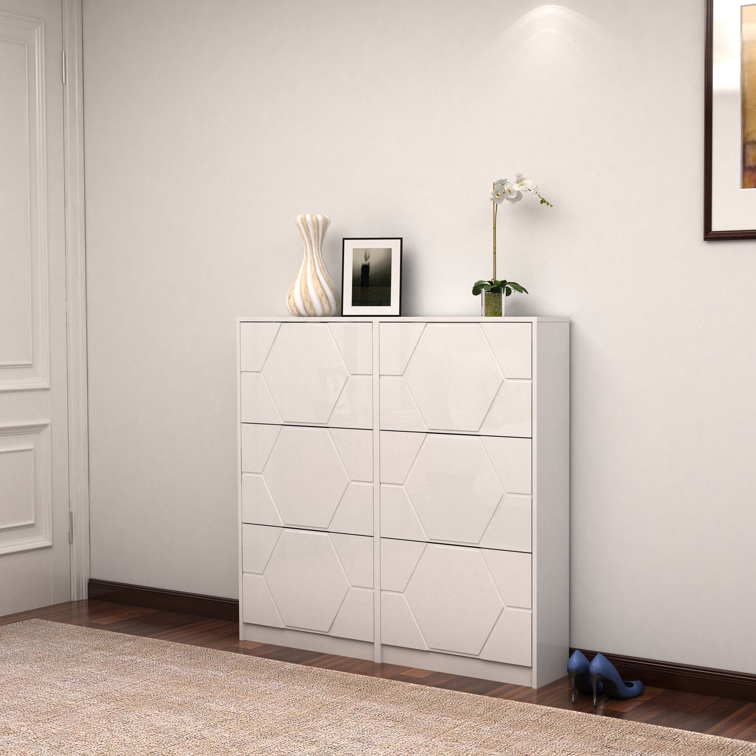 Attractive Appearance:The carved diagonal pattern has an unlimited sense of design,The white design cheers up the style of the cabinet,You deserve to have this delicate and practical shoe cabinet.