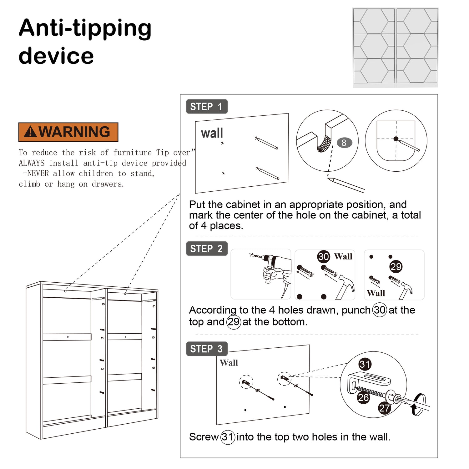 Anti-tipping Devices:Solid construction shoe cabinet: Crafted from sturdy MDF, this shoe organizer is as solid as they come. And with anti-tip kits for added safety and adjustable feet for uneven floors, it's a piece you can rely on, even with little loved ones around.