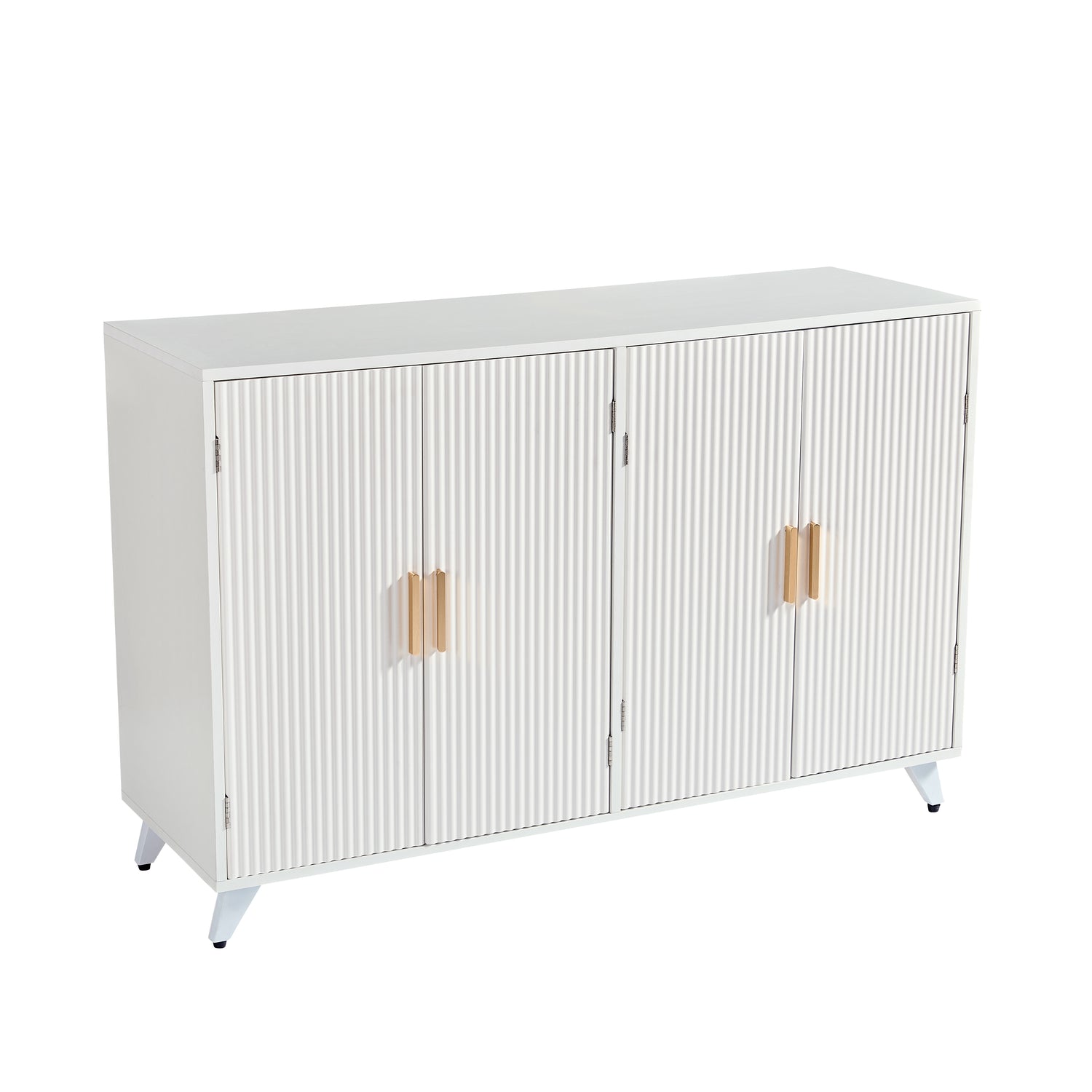 • 【Modern Accent Cabinet】This 4 door storage cabinet with water ripple design is suitable for decorating most homes, and the combination of gold and white will provide an attractive visual effect.