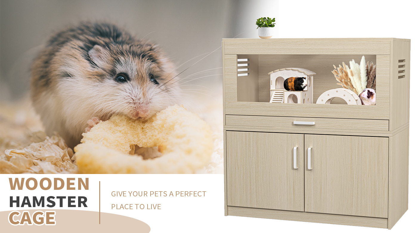 Our cages are pet friendly and provide a comfortable and safe space for small animals to grow. Such as hamsters, guinea pigs, lizards, hedgehogs, snakes, small rabbits and more are suitable for feeding in our wooden hamster cages.