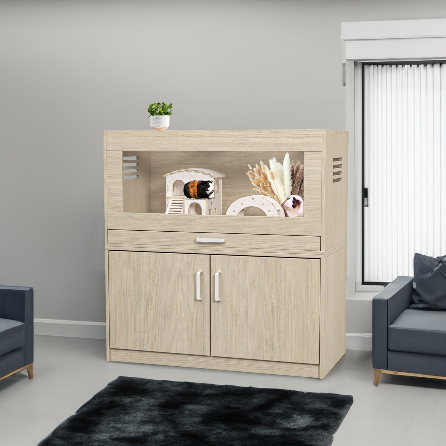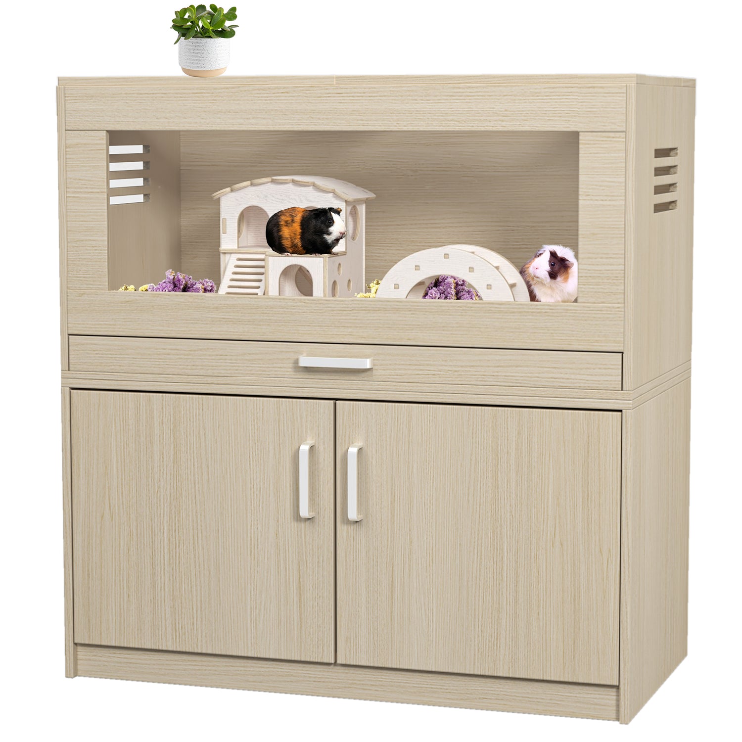 Squirrel cage acrylic panel with independent storage cabinet and wooden guinea pig room with bridge (L 31.50 x W 15.75 x H32.28)