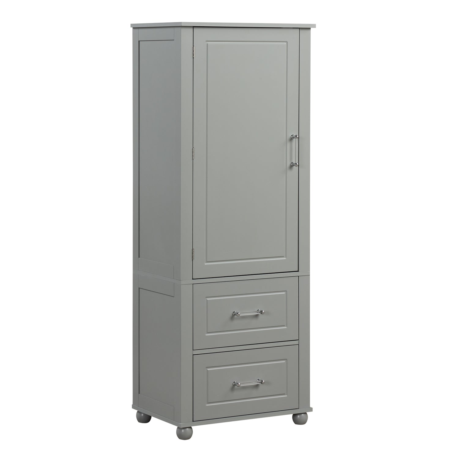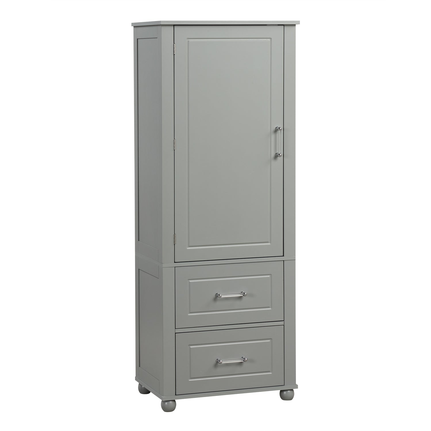 Tall Bathroom Storage Cabinet, Freestanding Storage Cabinet with Two Drawers and Adjustable Shelf, MDF Board , Grey - V.I.P Digital Presence