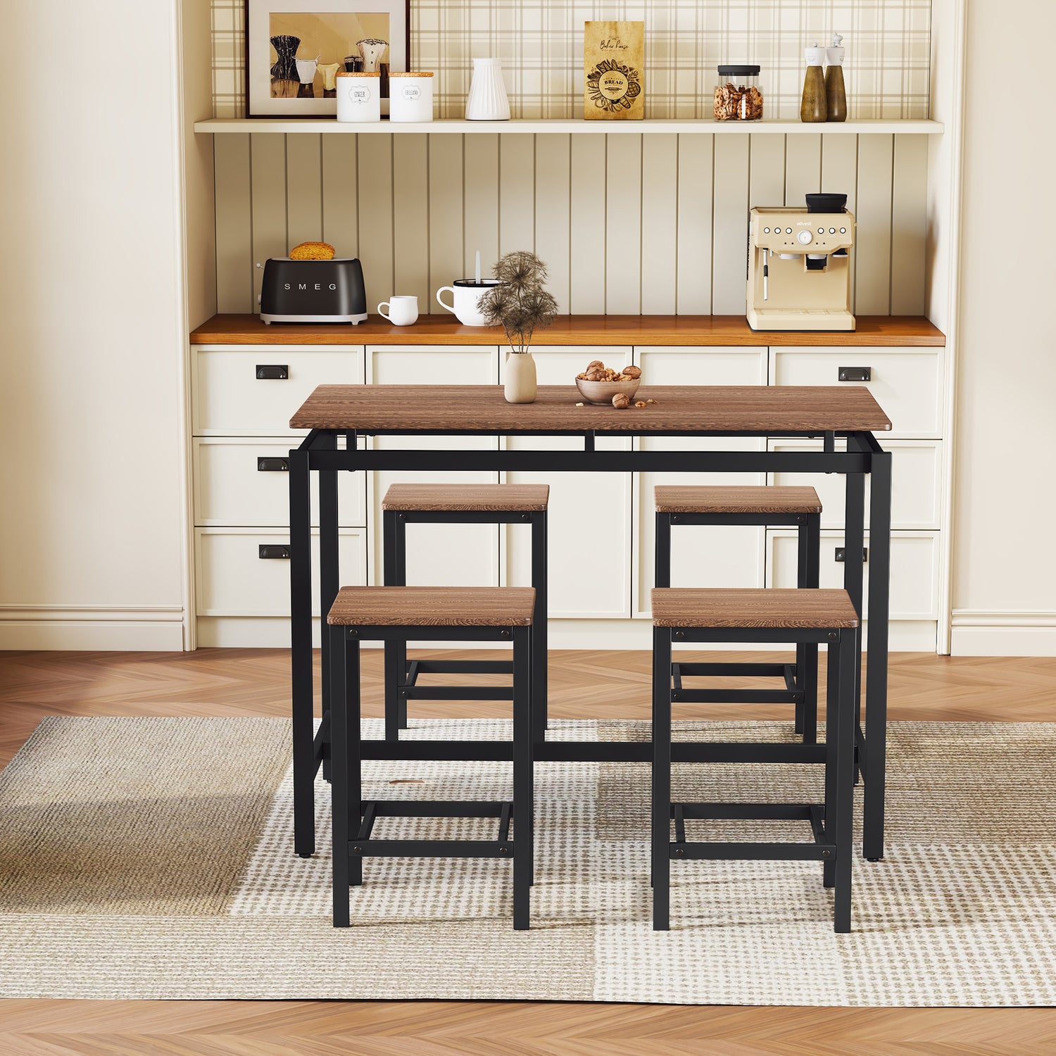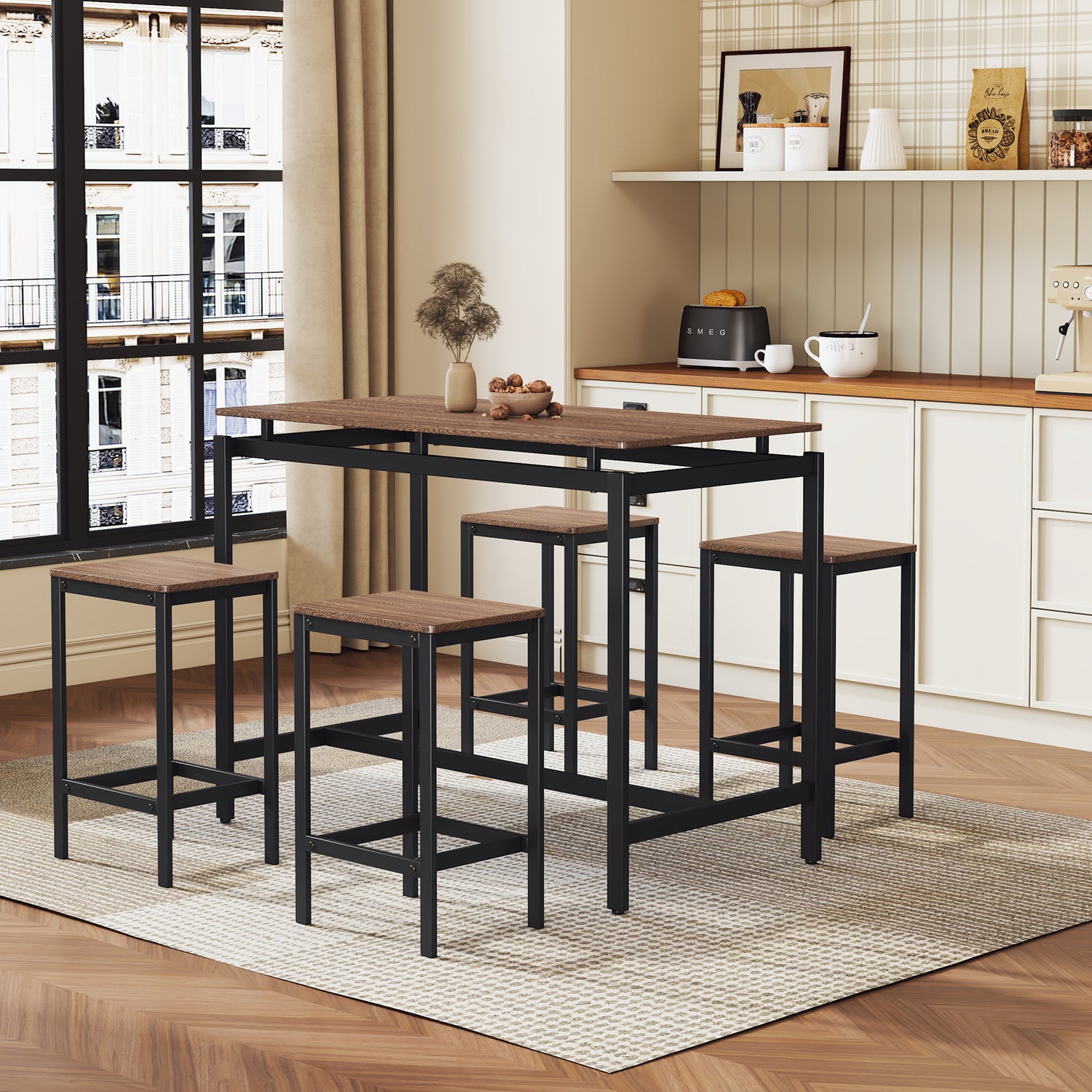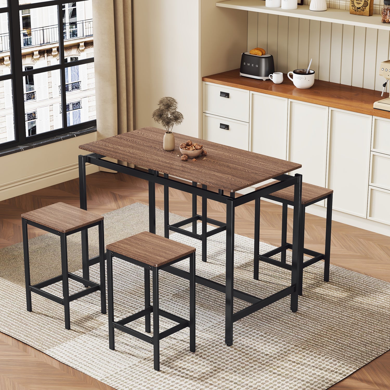 TREXM 5-piece compact bar table with table and stool - modern industrial design (dark brown)