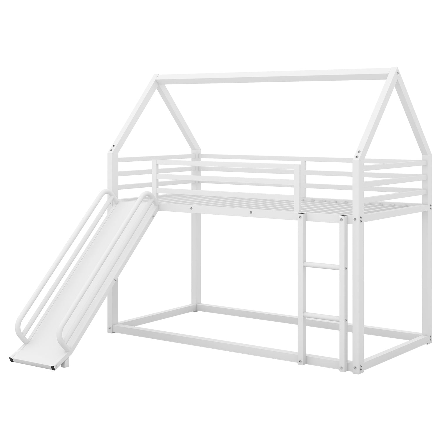 Twin over Twin House Bunk Bed with Ladder and Slide,White