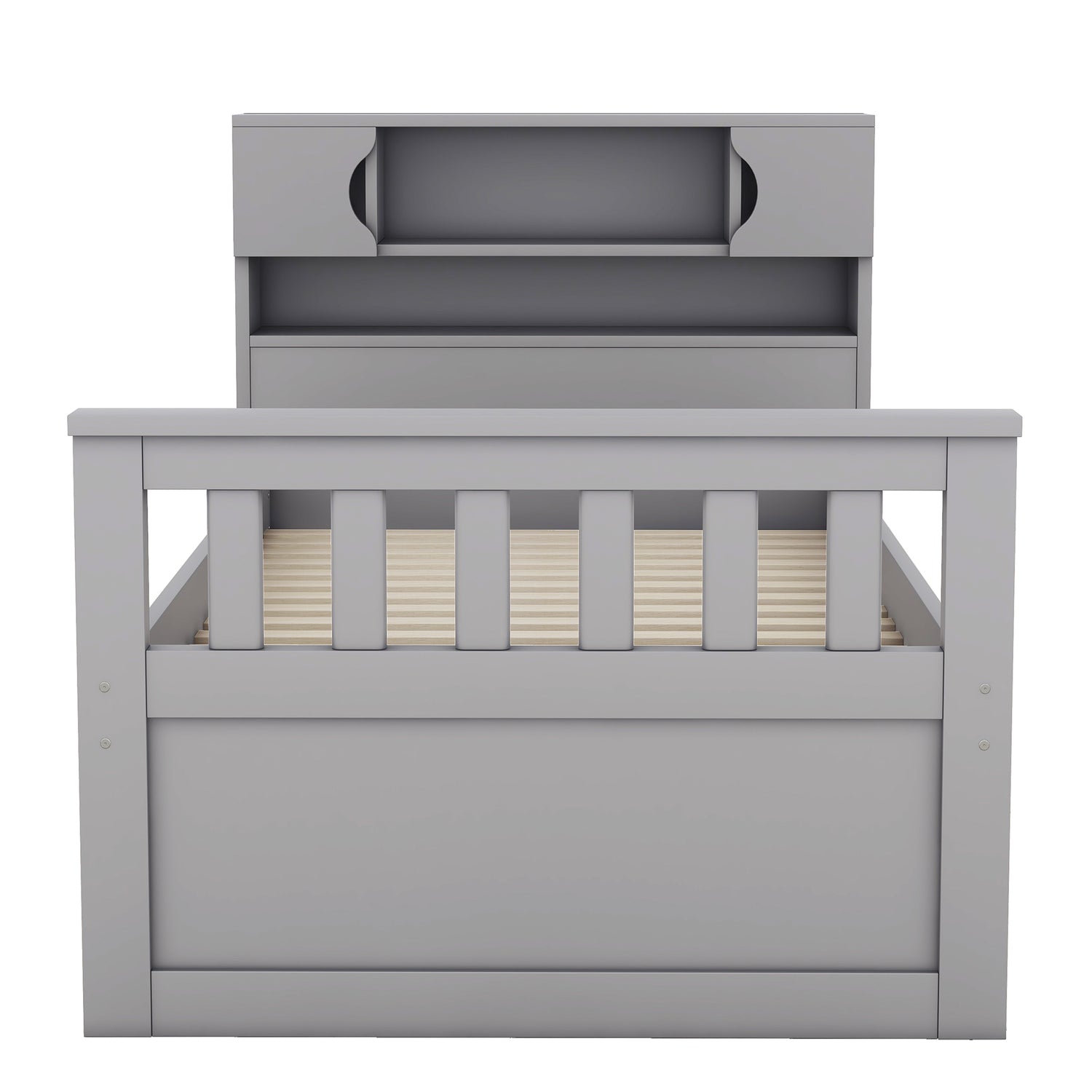 Twin Size Captain Platform Bed Frame with Storage Bookcases and Shelves,Four Drawers, Gray - V.I.P Digital Presence