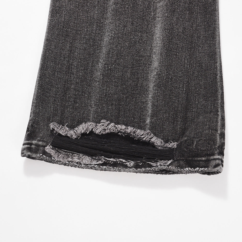 Washed Distressed Wide-Leg Jeans Men's European and American Punk INS Personalized Loose Hole Frayed Flare Pants - Black / S is backordered and will ship as soon as it is back in stock.