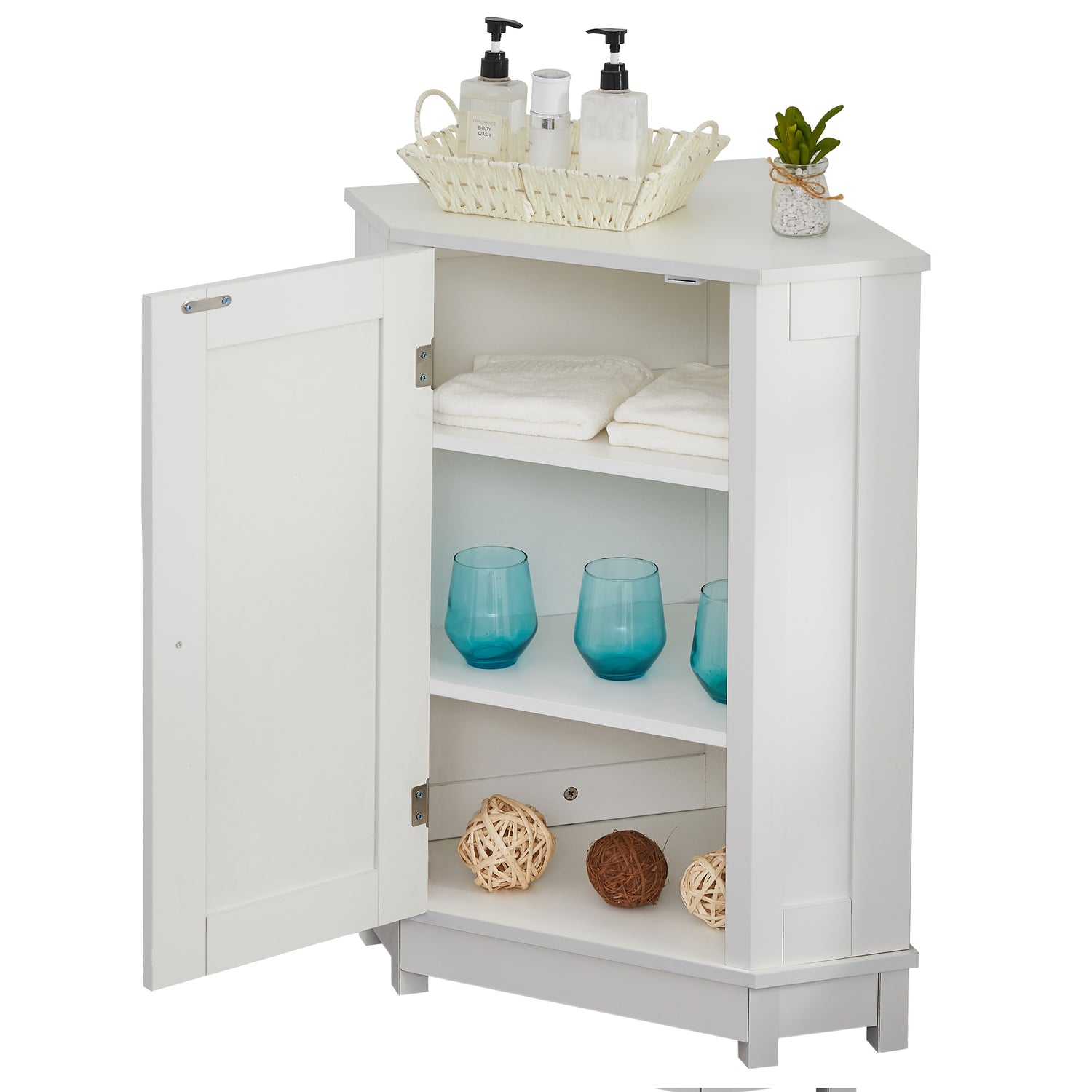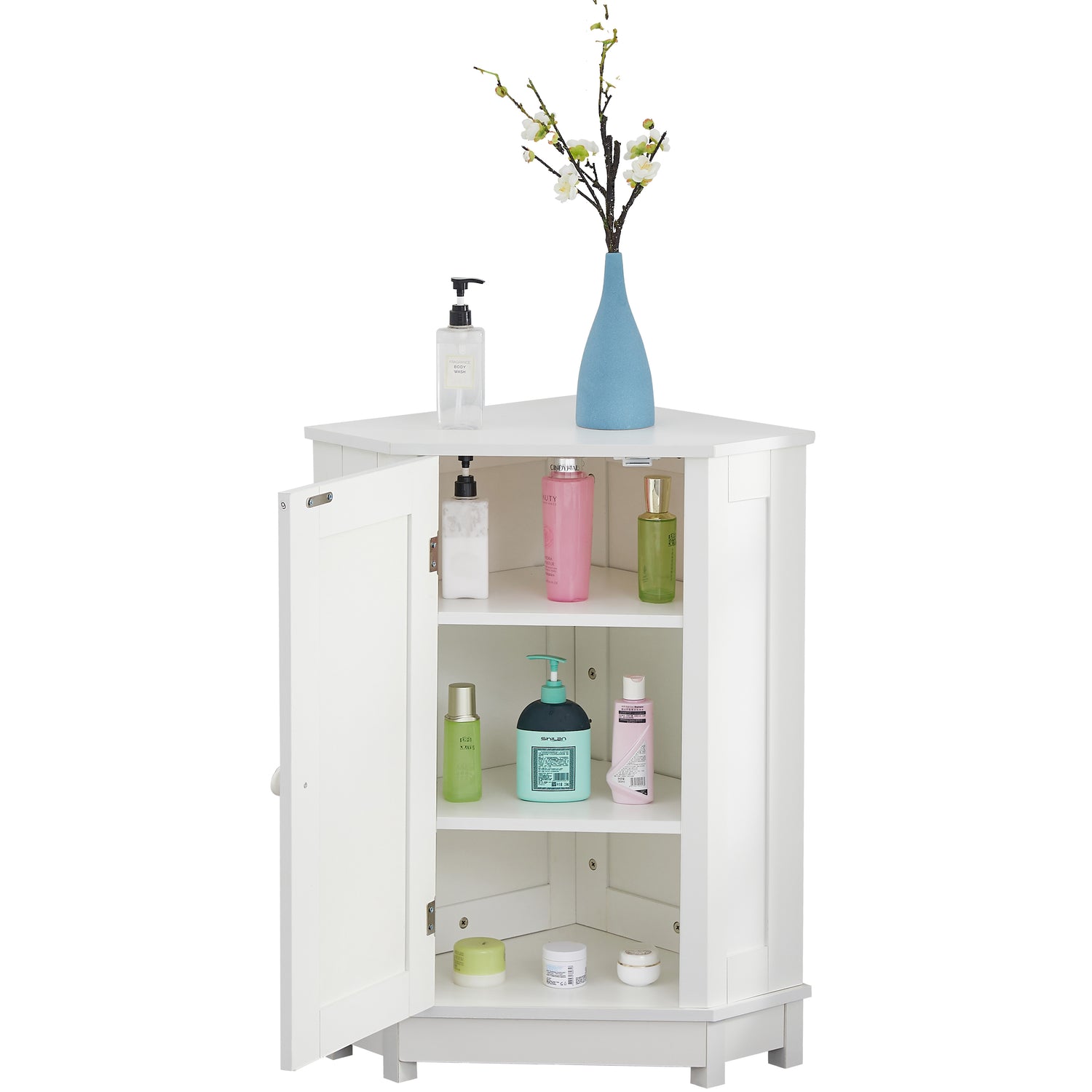 White Bathroom Cabinet Triangle Corner Storage Cabinet with Adjustable Shelf Modern Style MDF Board - White+MDF is backordered and will ship as soon as it is back in stock.