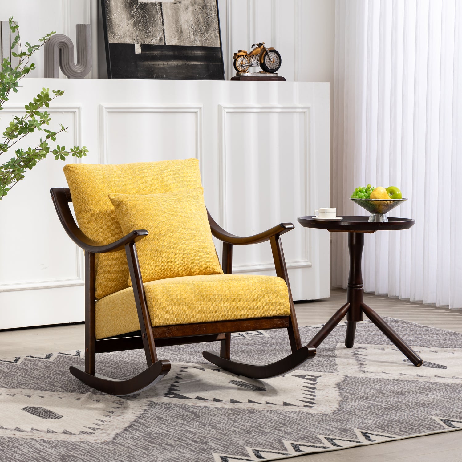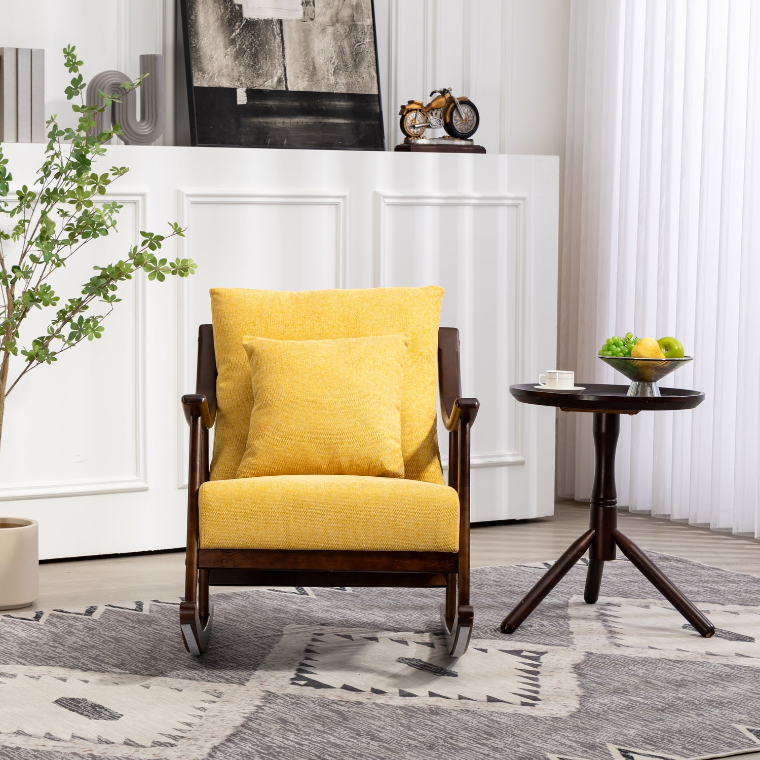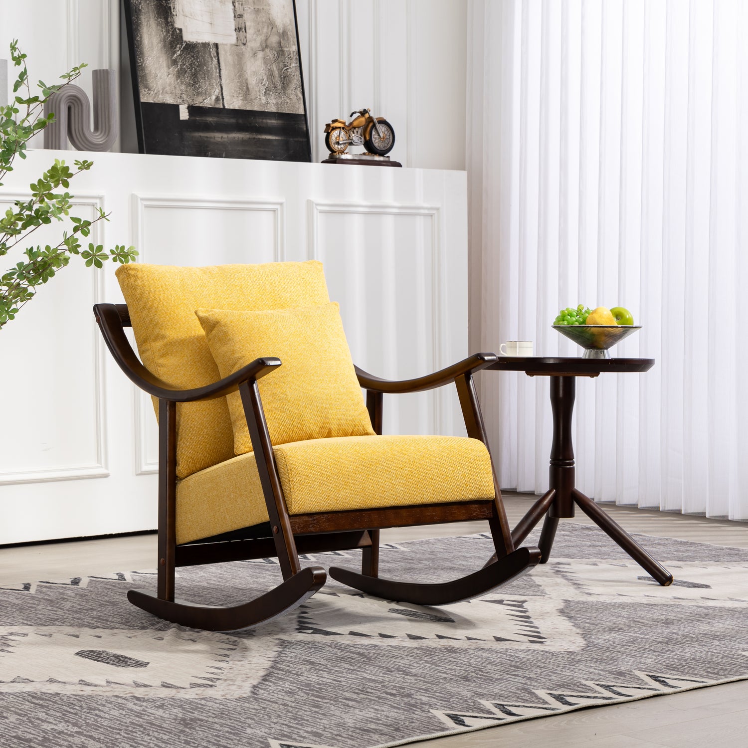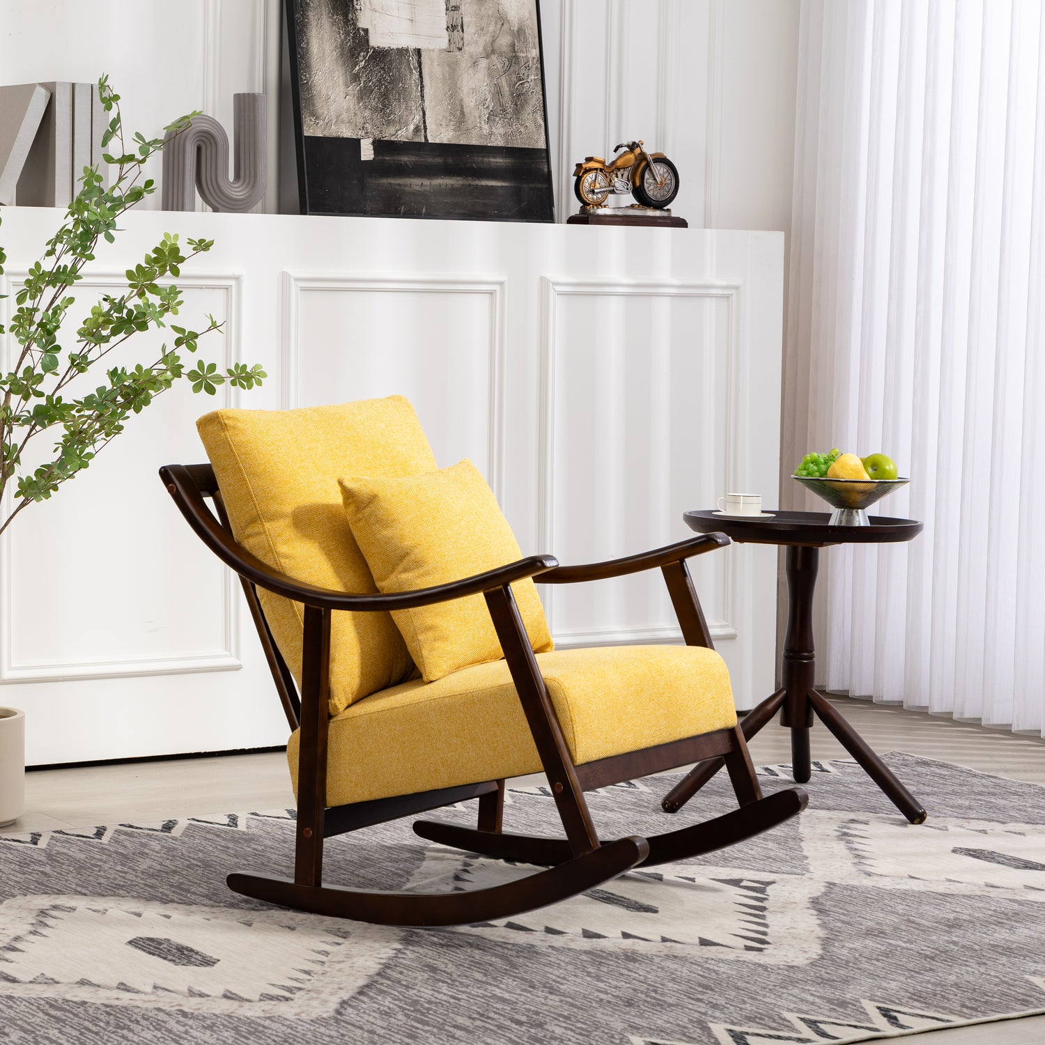 Elegant rocking chair: A modern accent rocking chair can soothe a baby's emotions, and such a gentle rocking chair can help you soothe the baby's sleep. You can also place it on the balcony to read and take a nap, or watch videos and play games in front of the fireplace, enjoying a wonderful time.