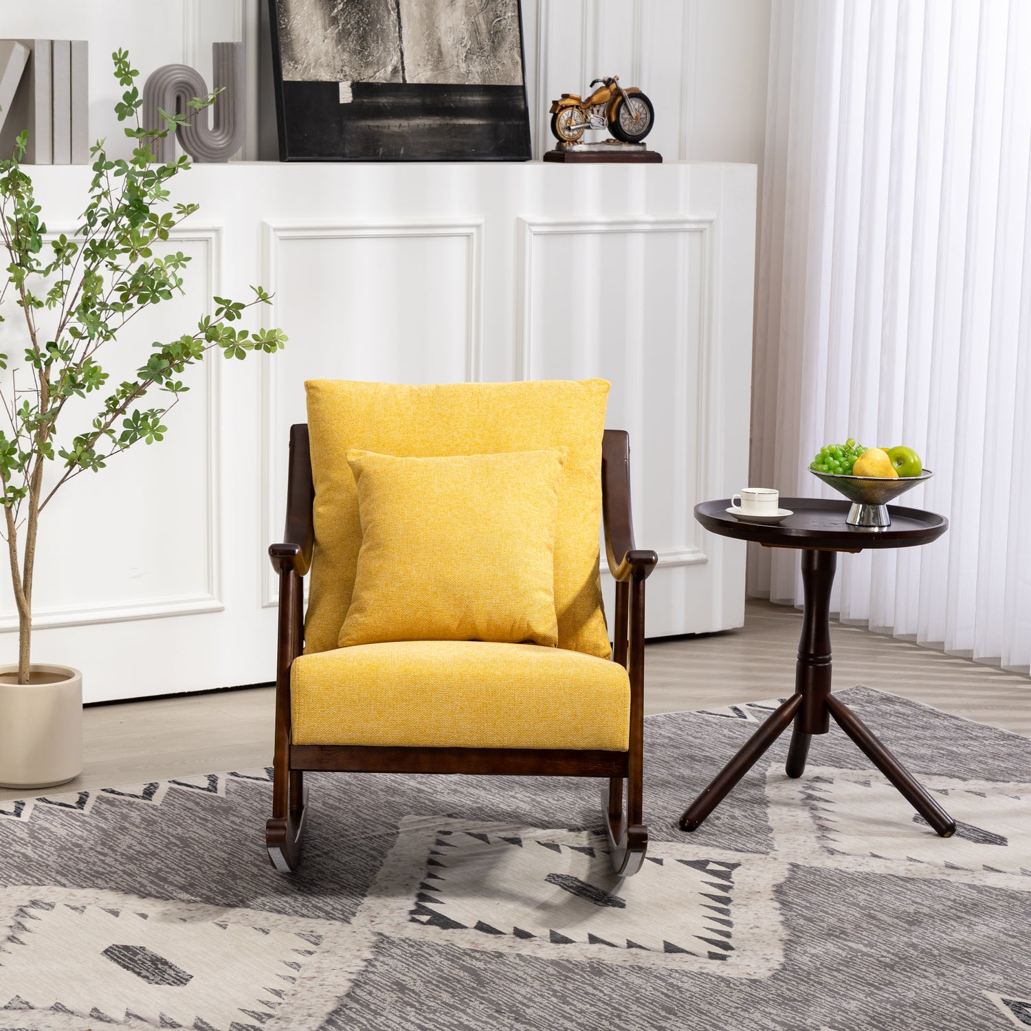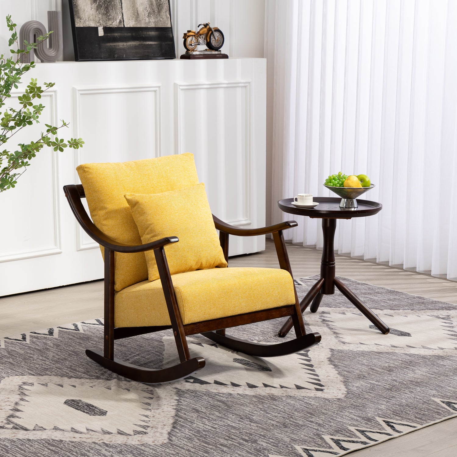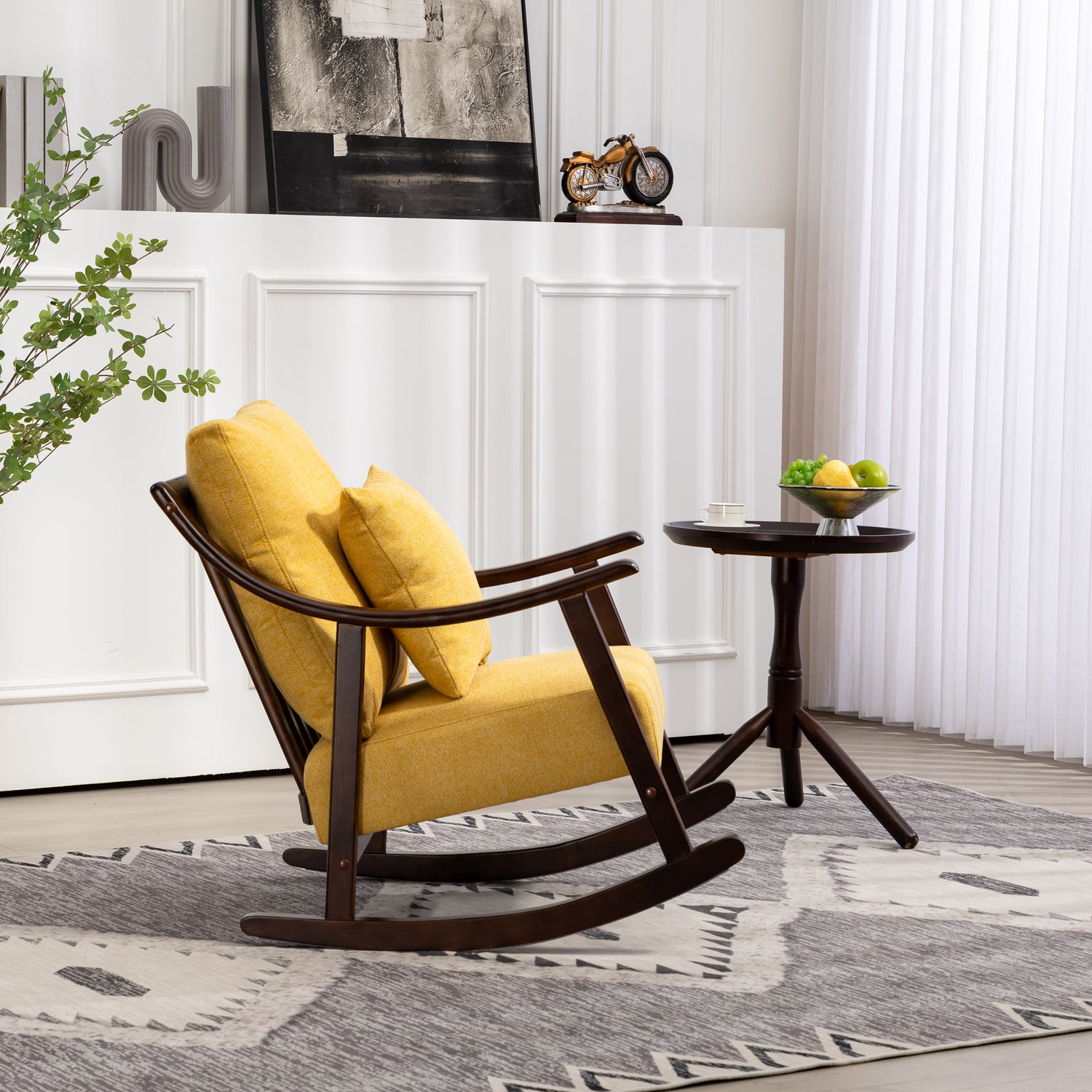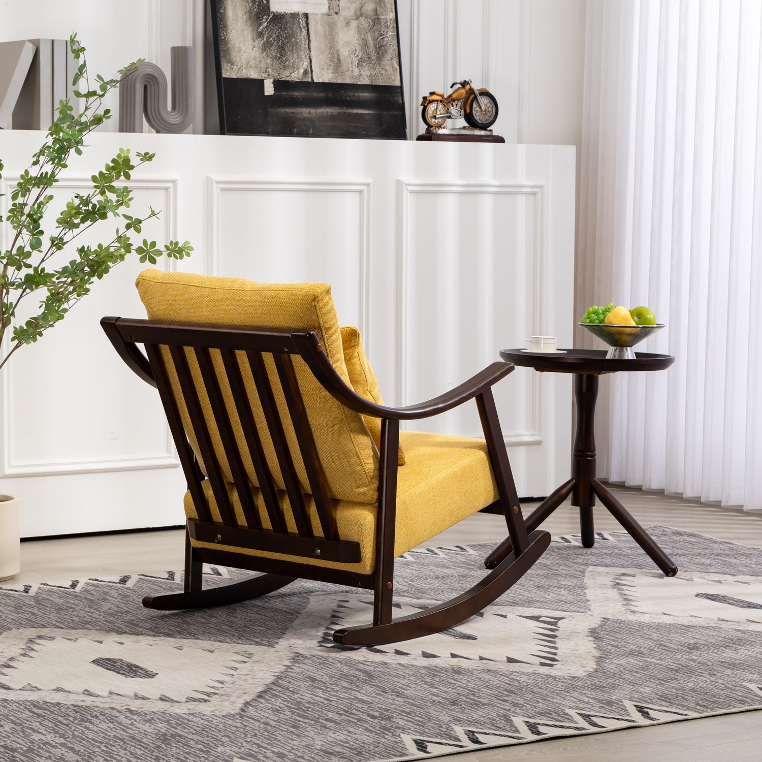 Elegant rocking chair: A modern accent rocking chair can soothe a baby's emotions, and such a gentle rocking chair can help you soothe the baby's sleep. You can also place it on the balcony to read and take a nap, or watch videos and play games in front of the fireplace, enjoying a wonderful time.