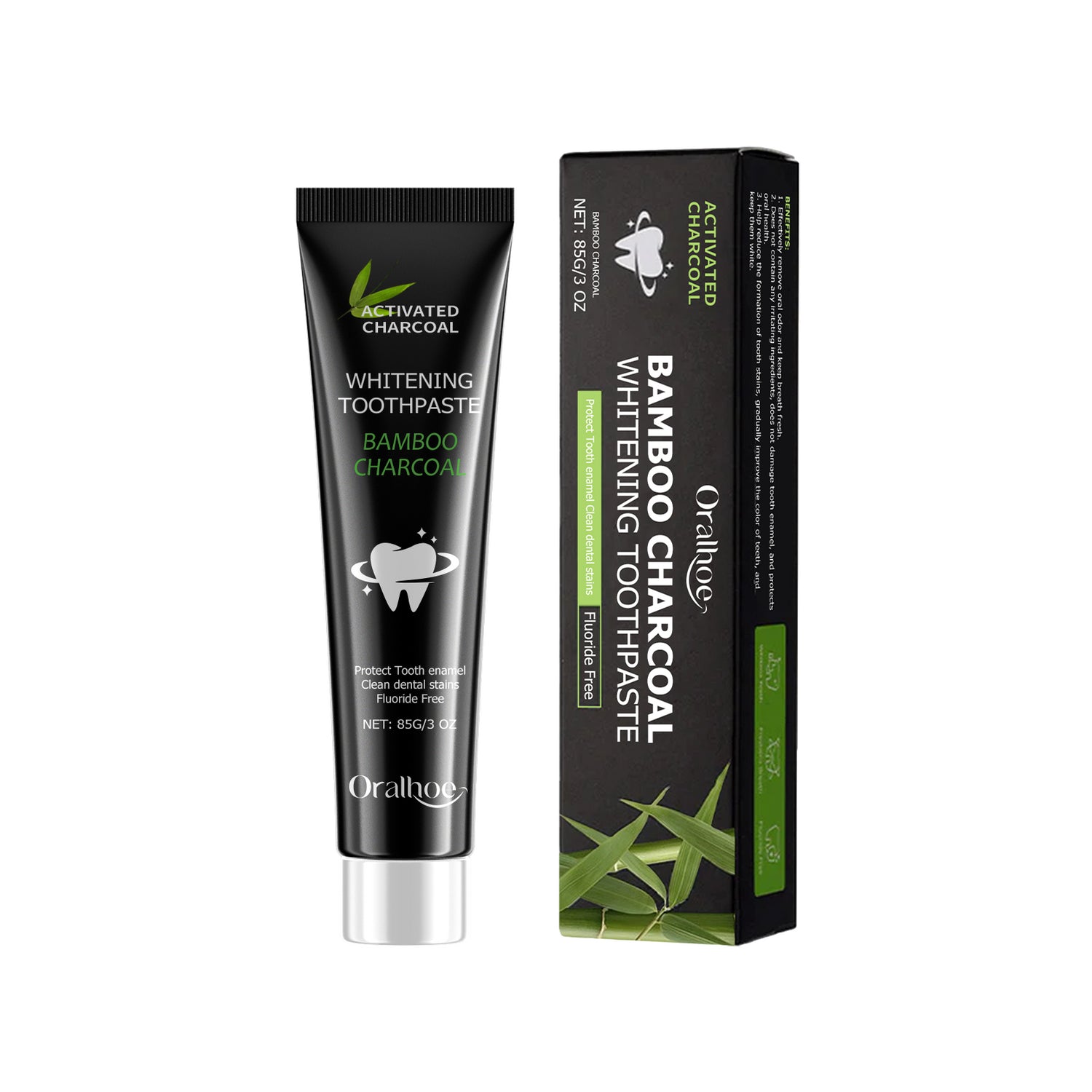 Our bamboo charcoal toothpaste contains peppermint extract, sodium silicate, activated carbon. It freshens the breath and soothes the mouth. Prevent plaque and keep your teeth white. Absorb tooth stains, deep cleaning. The way to use it is very simple: wet the toothbrush, squeeze the appropriate amount of bamboo charcoal whitening toothpaste on the toothbrush. Gently brush the surface of your teeth with a toothbrush for 2-3 minutes, then rinse your mouth with water. Activated carbon absorbs stains and cleans thoroughly. Menthol formula keeps breath fresh.