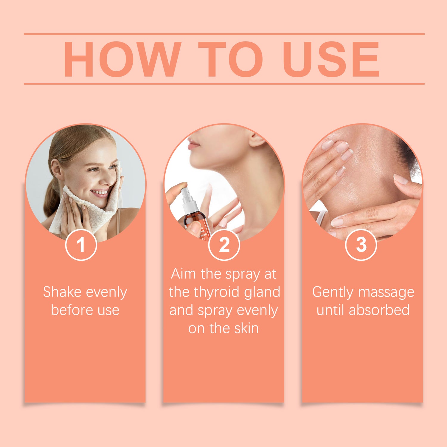 Our body care supplement spray contains black pepper extract, peppermint extract, mugwort extract. It can promote the blood circulation of the skin, enhance the vitality of the skin, and show a healthy glow. Relieve muscle fatigue and rejuvenate. Its use method is very simple: 1. Shake evenly before use; 2. Aim the spray at the thyroid gland and evenly spray on the skin; 3. Gently massage until absorbed. Continuous release of active ingredients that help burn fat throughout the day. Easy to use, no extra time required, perfect for busy lives.
