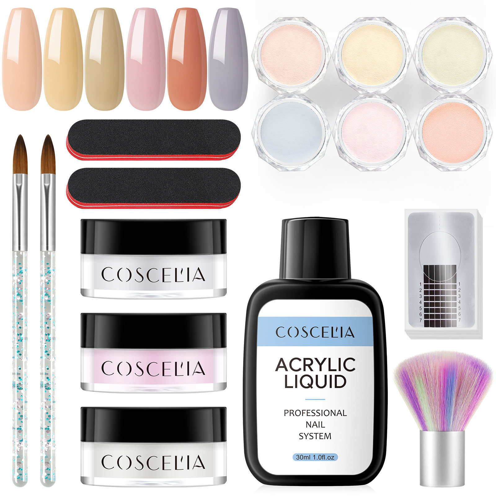 COSCELIA New 9 Color Crystal Color Powder 30Ml Crystal Liquid Manicure Tool Full Set Of Beginners