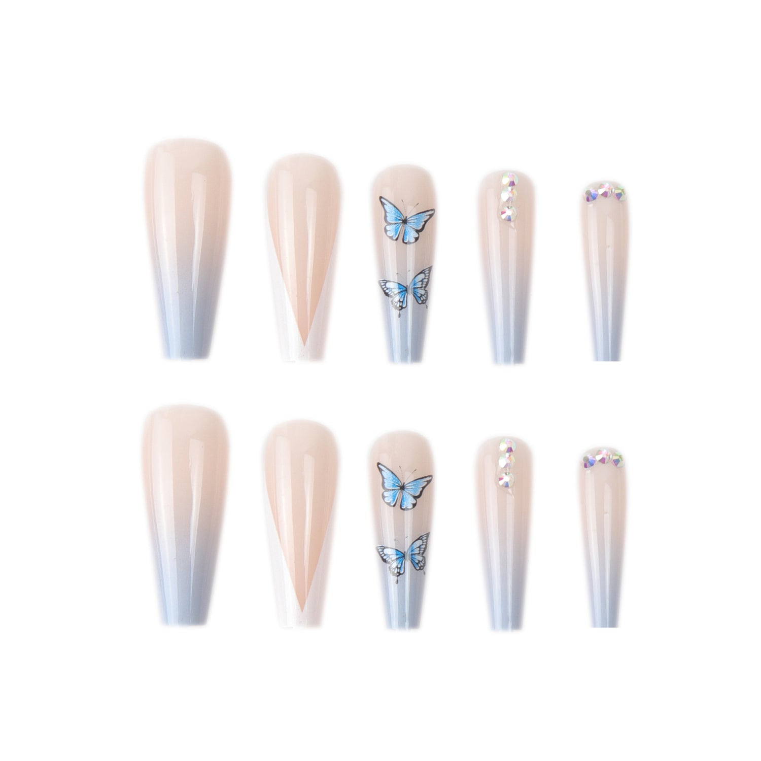 Ins Net Red With The Same Blue Butterfly Point Drill V-Shaped French Style Personality Trend Wearing Manicure Nail Patch - CBLCY-29 Glue ist zurückbestellt und wird versendet, sobald es wieder auf Lager ist.