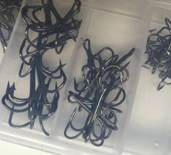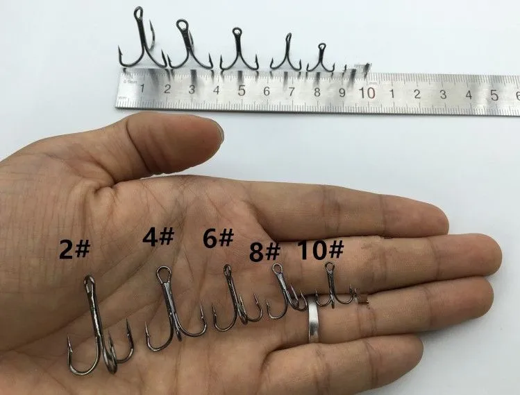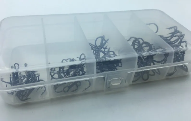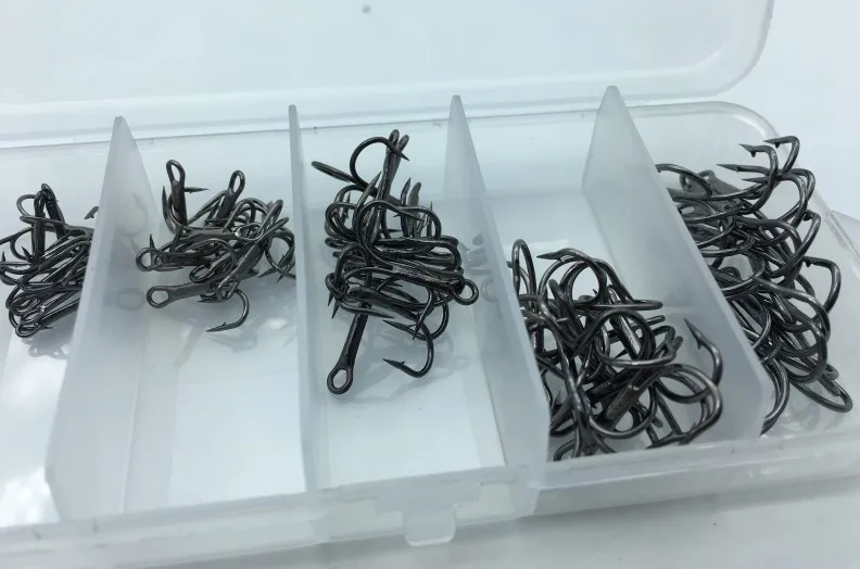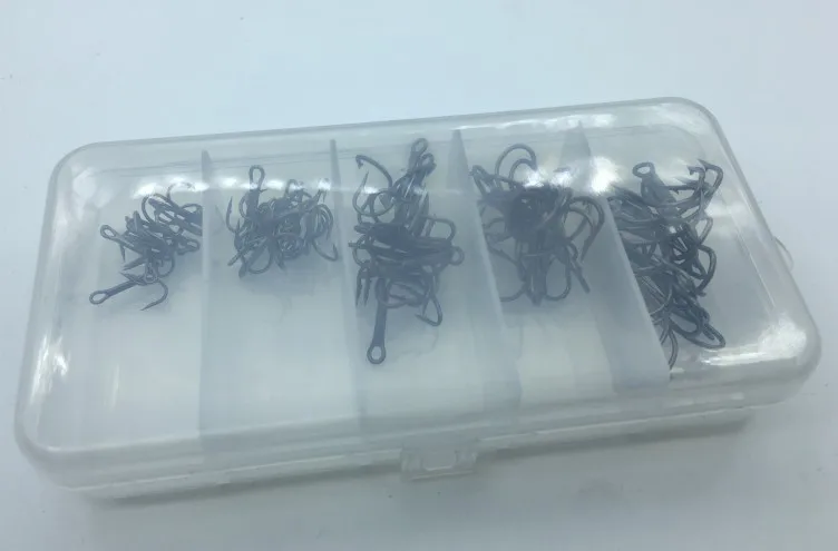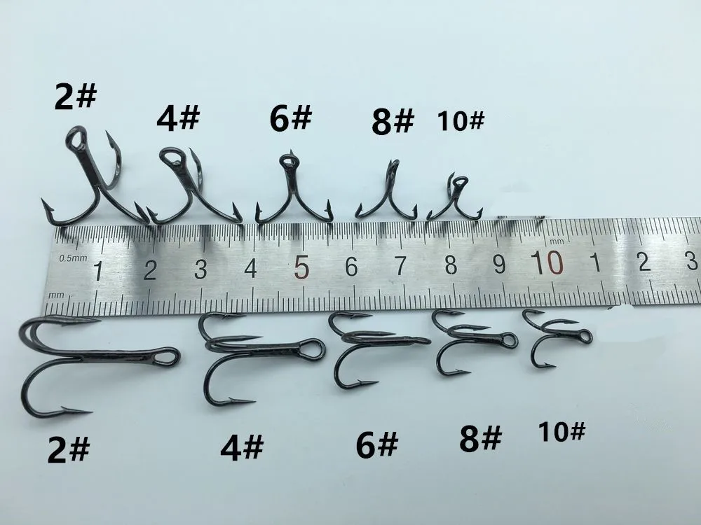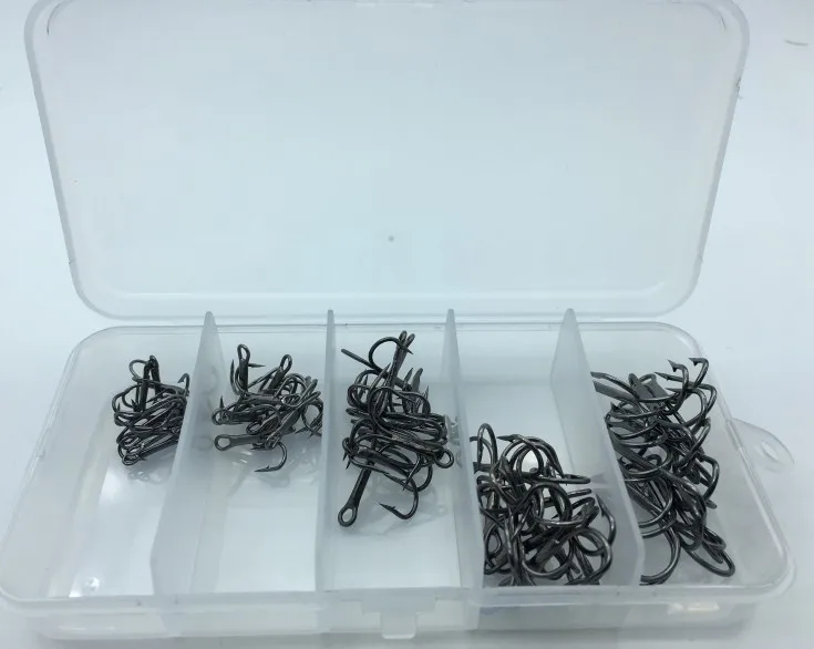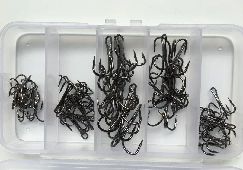 Rompin 50pc/boxFishing Hook High Carbon Steel Treble Round Bent Treble Saltwater Bass 2#-10#