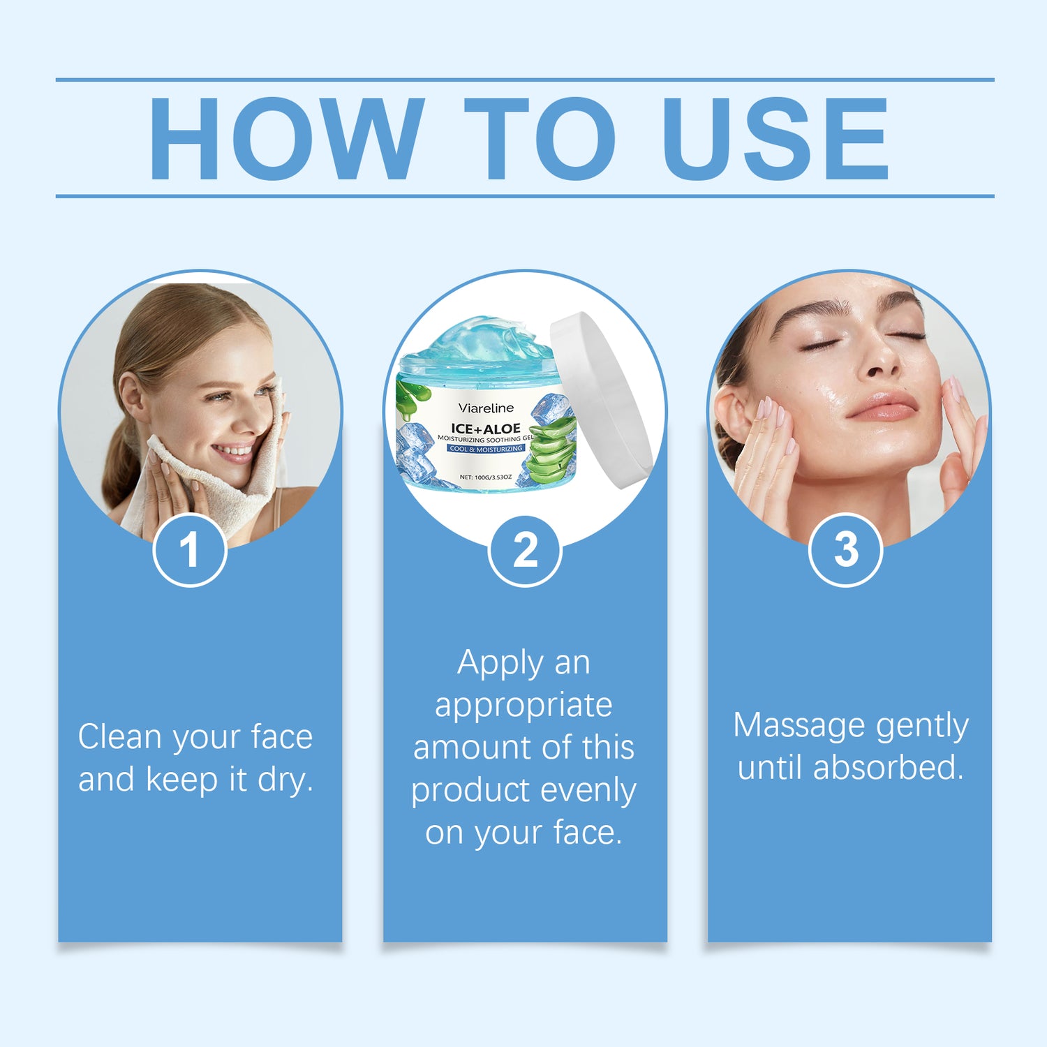Our aloe Vera moisturizing gel contains aloe vera leaf extract, mint leaf extract. It is easy to use and offers a refreshing, moist texture for all skin types. Relieve dryness and discomfort, improve skin moisture. Helps to lock in moisture, keeping skin soft and smooth, leaving skin more hydrated and shiny after application. The way to use it is simple: clean your face and keep it dry. Apply appropriate amount to face evenly. Massage gently until absorbed. And can be used continuously, the skin feels softer and smoother. The formula is refreshing, non-greasy and suitable for all skin types.