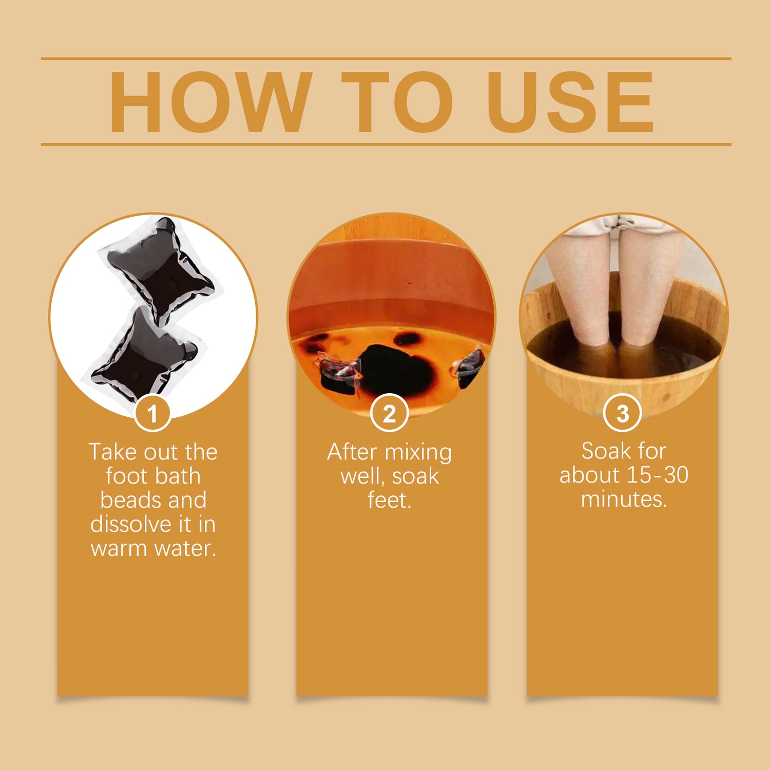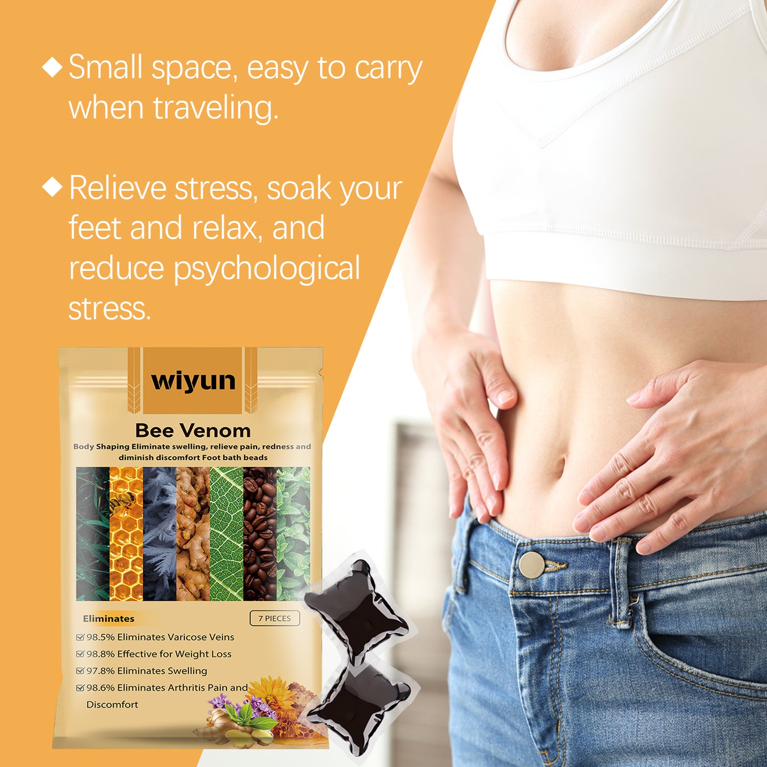 Our bee Venom Foot Bath beads contain bee venom, ginger root extract, green tea extract. It promotes foot warmth and increases blood circulation. Instant cooling, relieve foot fatigue. Its use method is very simple: 1. Take out the bath bead and dissolve it in warm water. 2. After mixing well, soak feet. 3. Soak for 15-30 minutes. Stimulates blood circulation and helps to tighten and activate foot skin. It gives you a soothing feeling and supports the health of the foot skin. Enhance skin resistance, promote skin repair, and make skin smoother.
