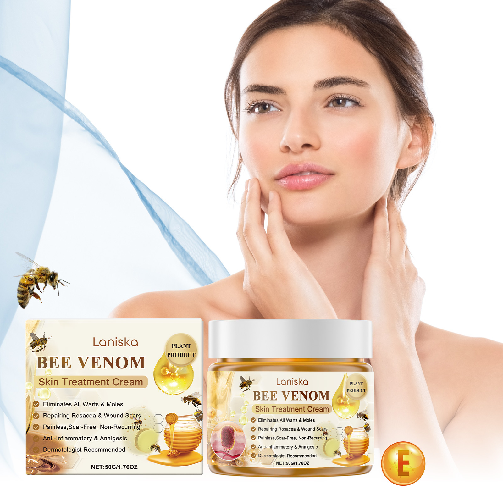 Our bee venom skin cream contains bee venom, tea oil and tocopherol (vitamin E). It can be aimed at the wart, gently removed, restore smooth; Inhibit the regeneration of dark spots and make the skin more even after long-term use. The way to use it is simple: 1. Clean the skin. 2. Gently apply appropriate amount of cream to warts and moles, then evenly apply and wait for absorption. Helps to lighten the skin and restore beauty and firmness.