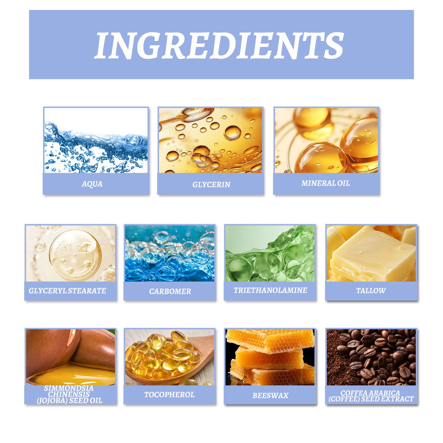 Our coffee grass fed Butter eye cream contains tocopherol (vitamin E), beeswax, and coffee seed extract. It nourishes the skin around the eyes, locks in moisture for a long time, and keeps the eyes moisturized. The way to use it is simple: clean your hands and face and keep it dry, apply an appropriate amount to the skin around the eyes, and gently massage into circles to promote absorption. It can also help to improve the firmness of the skin around the eyes and improve the problem of skin relaxation.