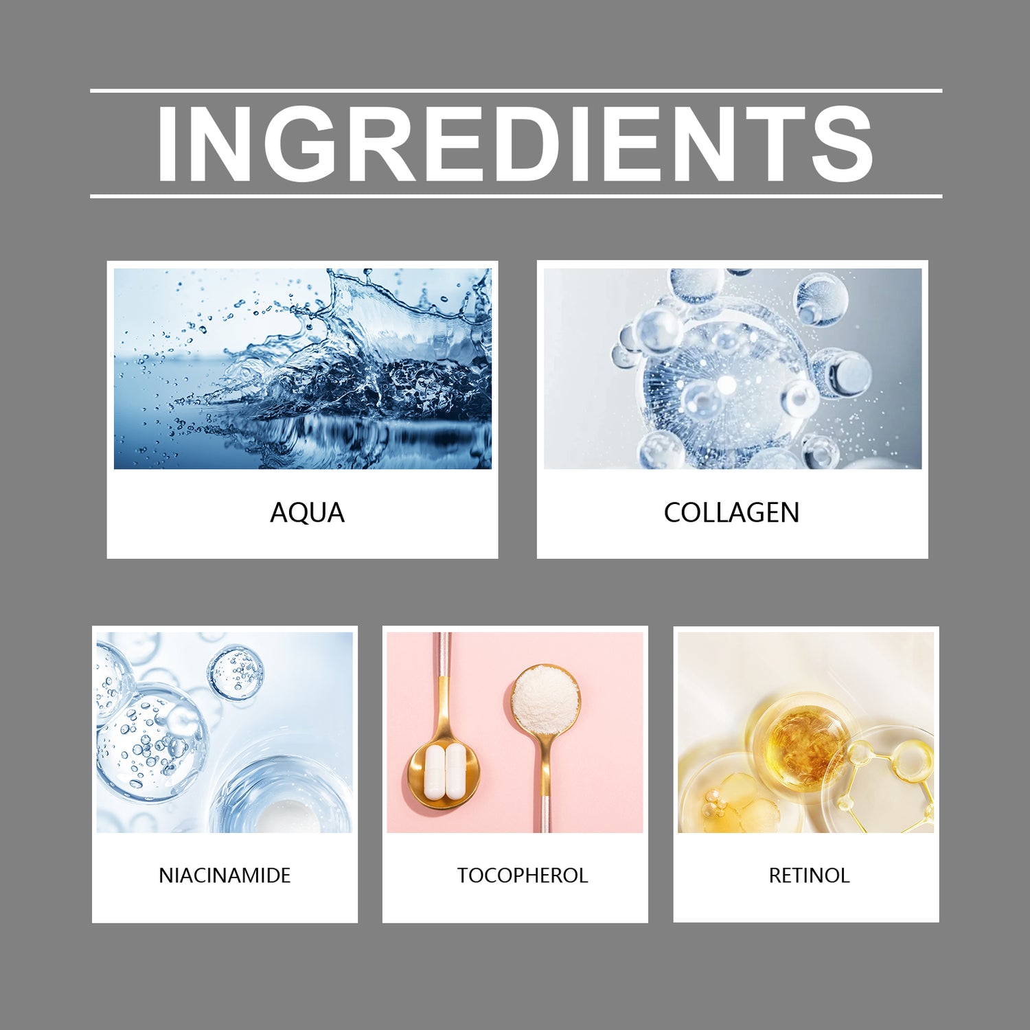 Our facial moisturizer contains retinol, collagen and niacinamide. It can effectively resist daily environmental stress, promote smooth skin and reduce dryness. Its application method is simple: 1. Clean facial skin and keep it dry. 2. Apply appropriate amount of the product evenly on the face. 3. Gently massage until fully absorbed. Instantly awaken skin vitality. Reduce dry lines and improve softness and smoothness.