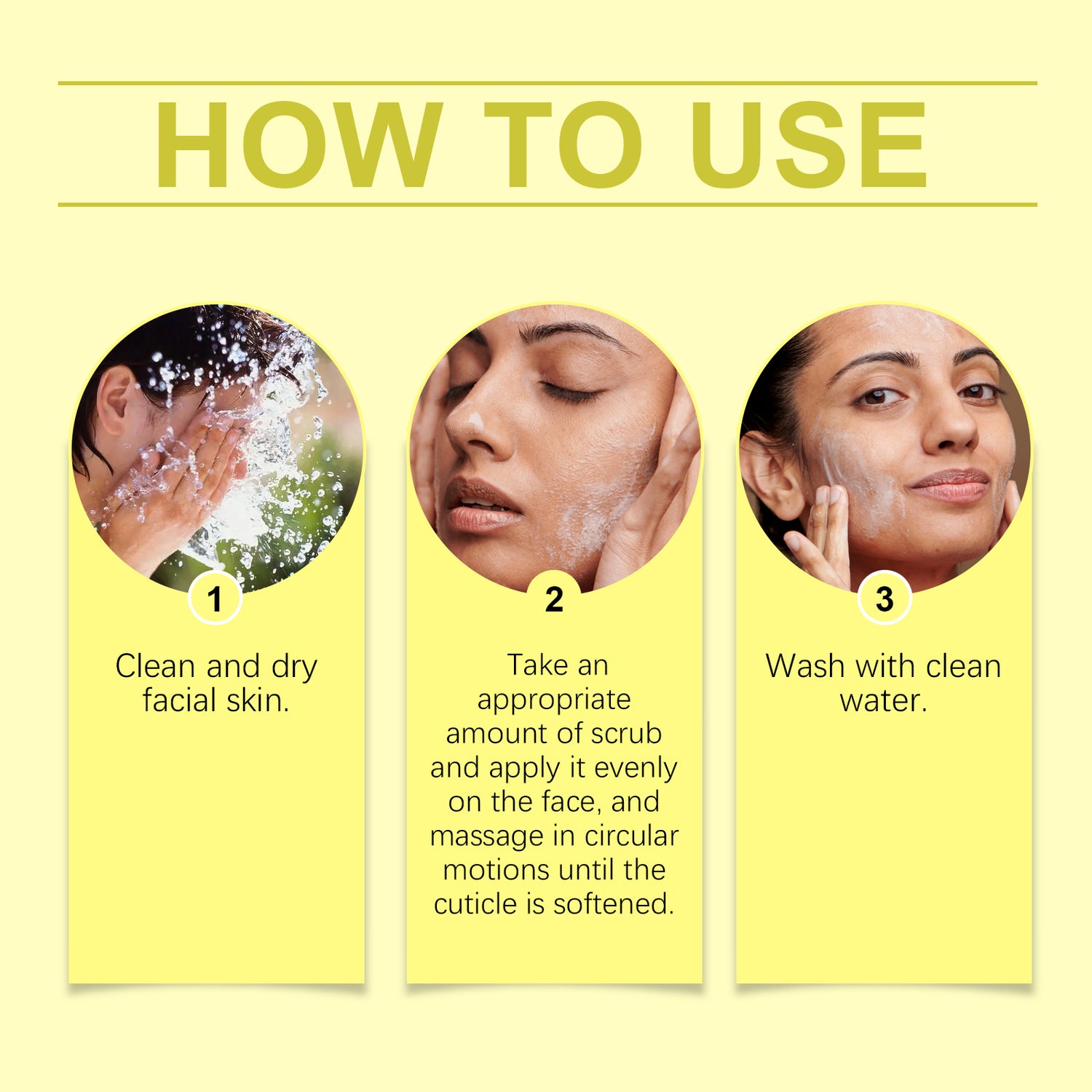 Our facial scrub contains turmeric root extract, wheat amino acids. It can effectively lighten the complexion and make the skin look brighter and fresher. Gently removes aged cuticles and improves skin texture. The way to use it is simple: clean dry facial skin. Apply proper amount of dishwashing liquid evenly to face and massage in circular motion until cuticles soften. Rinse with clean water. It can also make the skin feel more delicate and smooth, and improve the overall feeling of the skin.