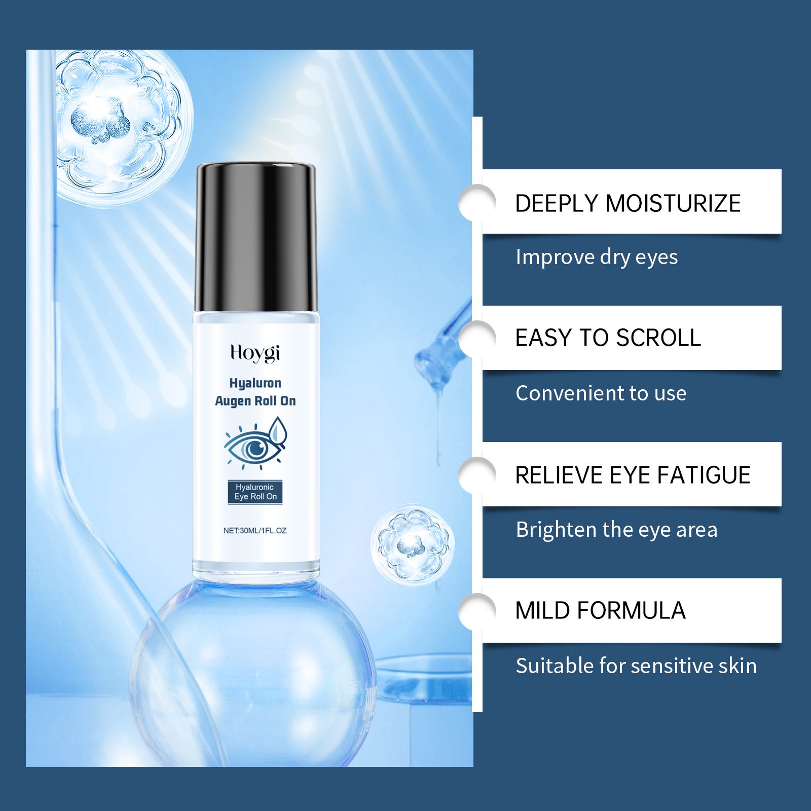 Our hyaluronic acid eye balls contain hyaluronic acid, ceramide and niacinamide. It can quickly replenish the moisture of the eye skin with hyaluronic acid and keep it moisturized for a long time. Cucumber extract effectively relieves eye strain, dark circles and puffiness. Its application is simple: clean the eye by gently rolling the ball along the eye area, then gently tapping the skin around the eye to help the essence be absorbed and dried. And nicotinamide can lighten the skin, make the eye skin more bright.