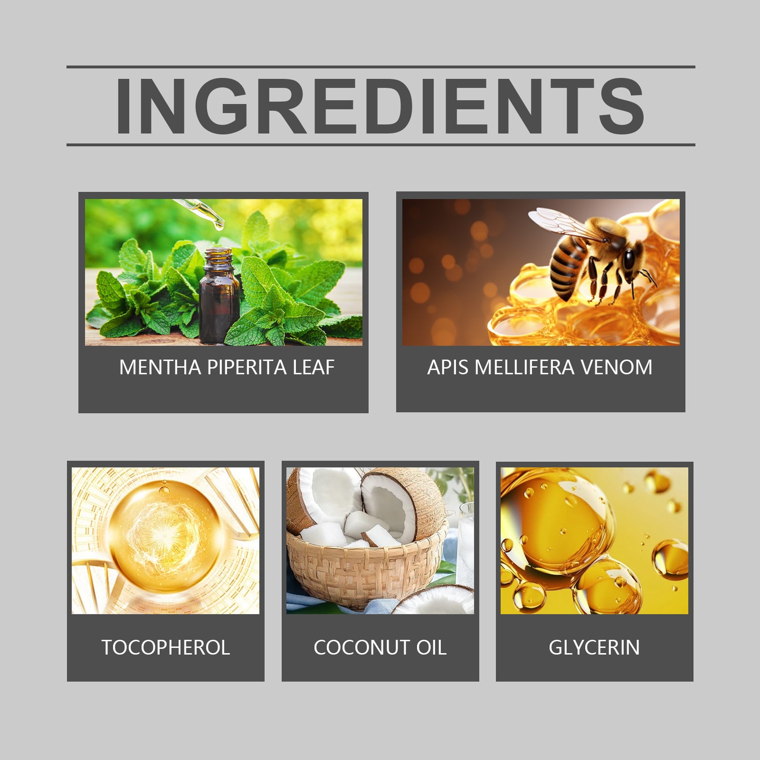 Our bee venom male breast development oil contains mint leaves, vitamin E (tocopherol), coconut oil. It can deeply nourish the skin, restore skin elasticity and shine. Its application method is very simple: apply an appropriate amount of this product evenly to the chest area, gently massage until completely absorbed. It can also improve blood circulation in the chest, speed up metabolism, and improve overall chest health.