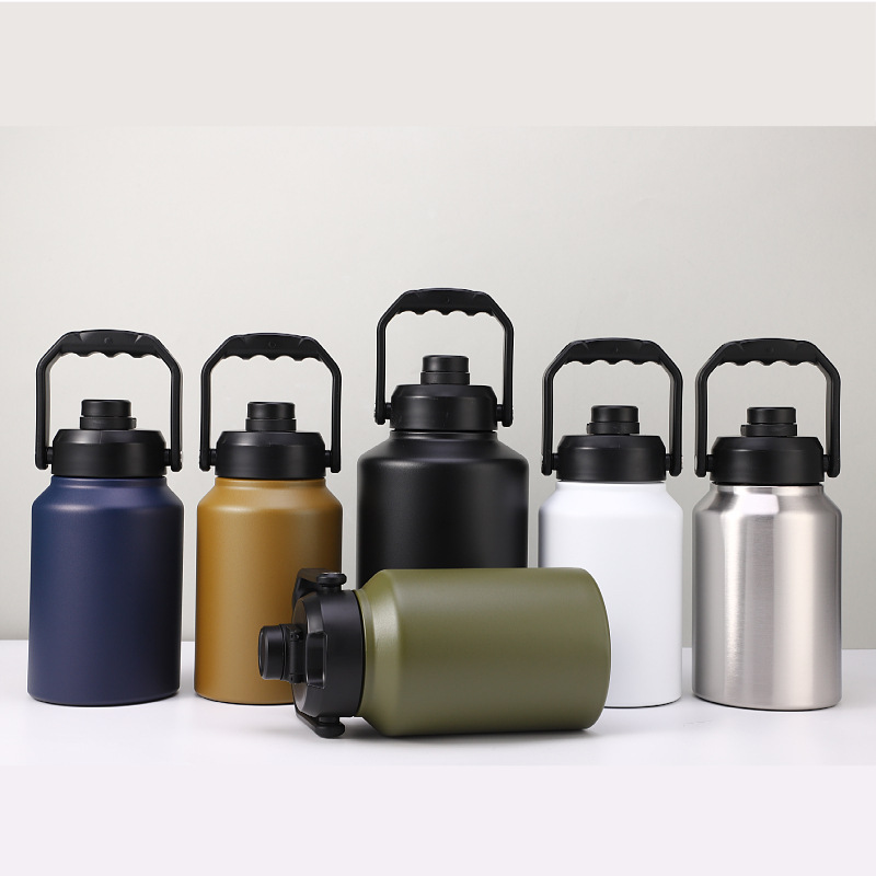 Double Wall Half Gallon Insulated Water Bottle Jug 64oz 128oz Stainless Steel Sports Water Flask with Handle