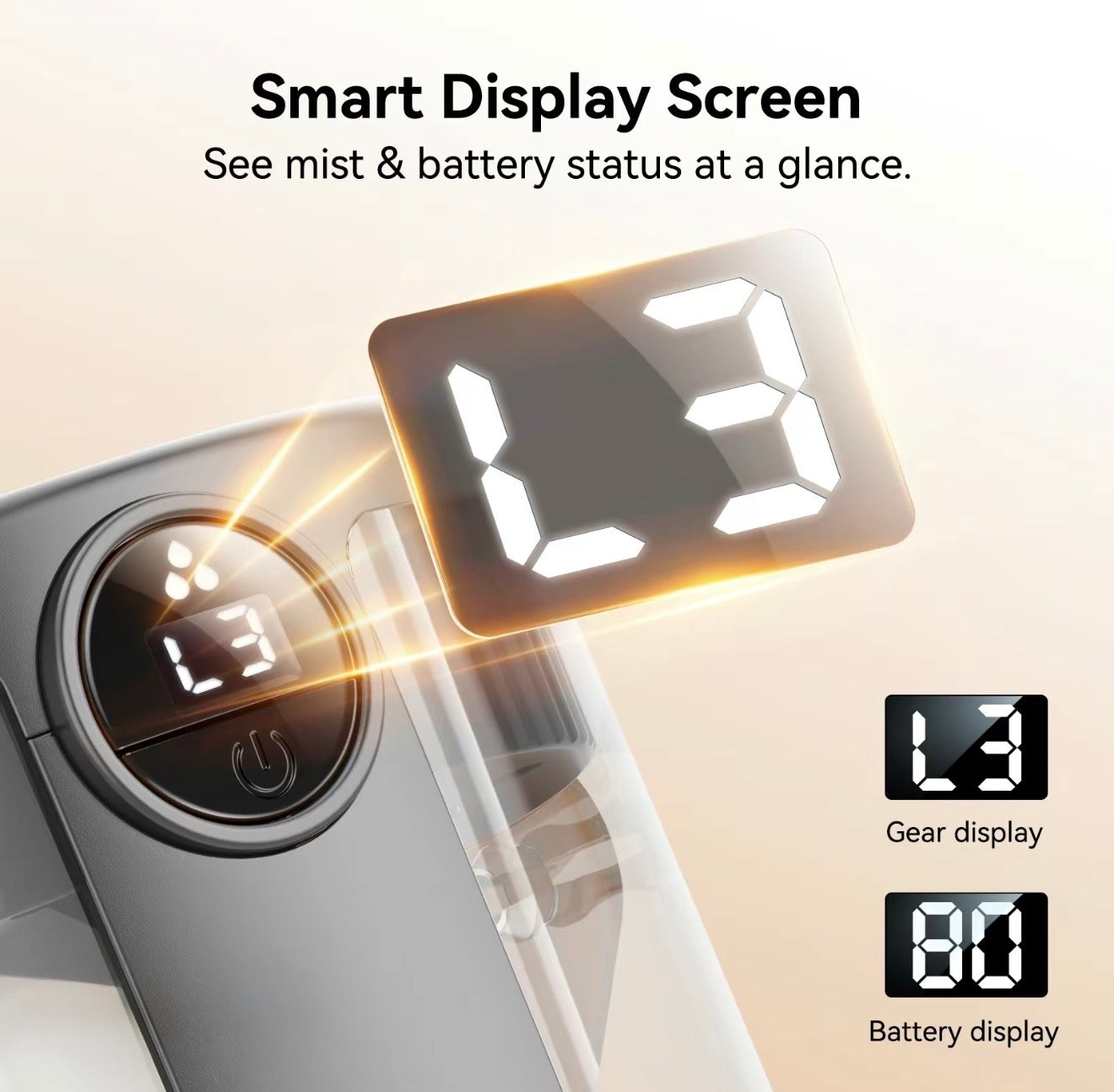 Shows real-time battery level and mist mode, giving you full control at a glance.