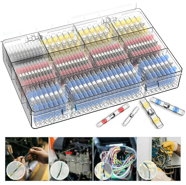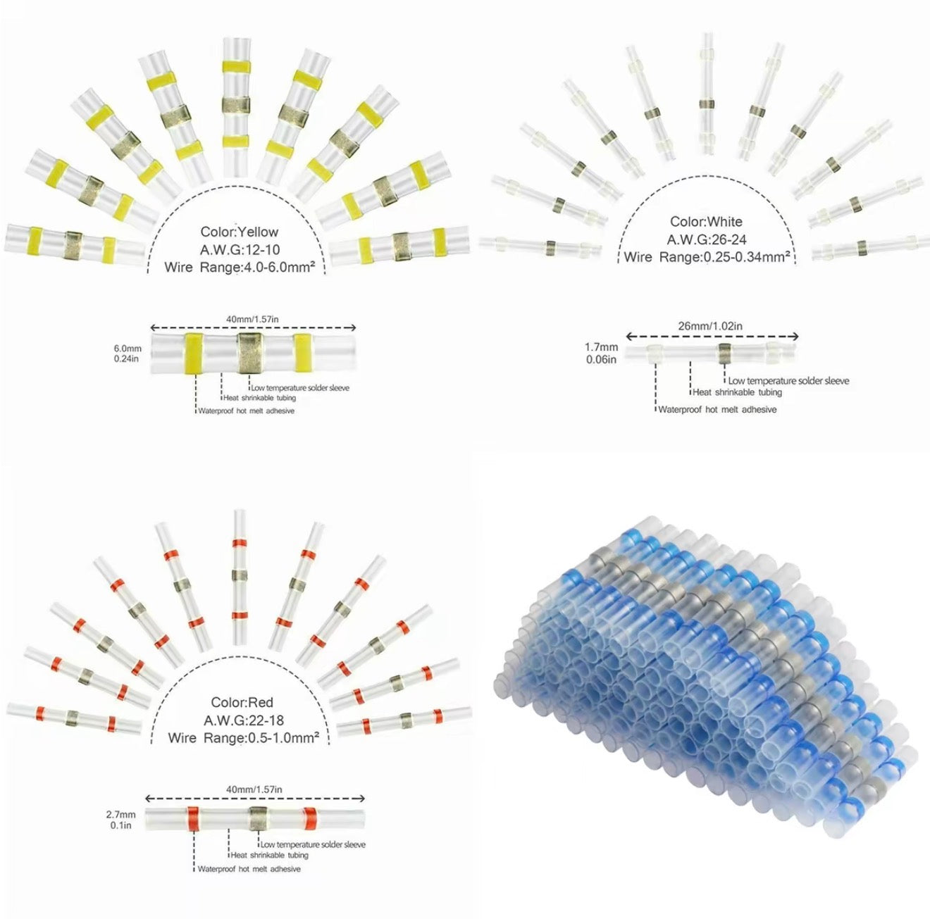 Each connector features color-coded heat shrink tubing to help you quickly identify the correct size. Simply insert the wires, apply heat, and the solder fully melts to form a firm, sealed connection. The hot-melt adhesive lining provides a waterproof barrier, preventing corrosion and wire separation.