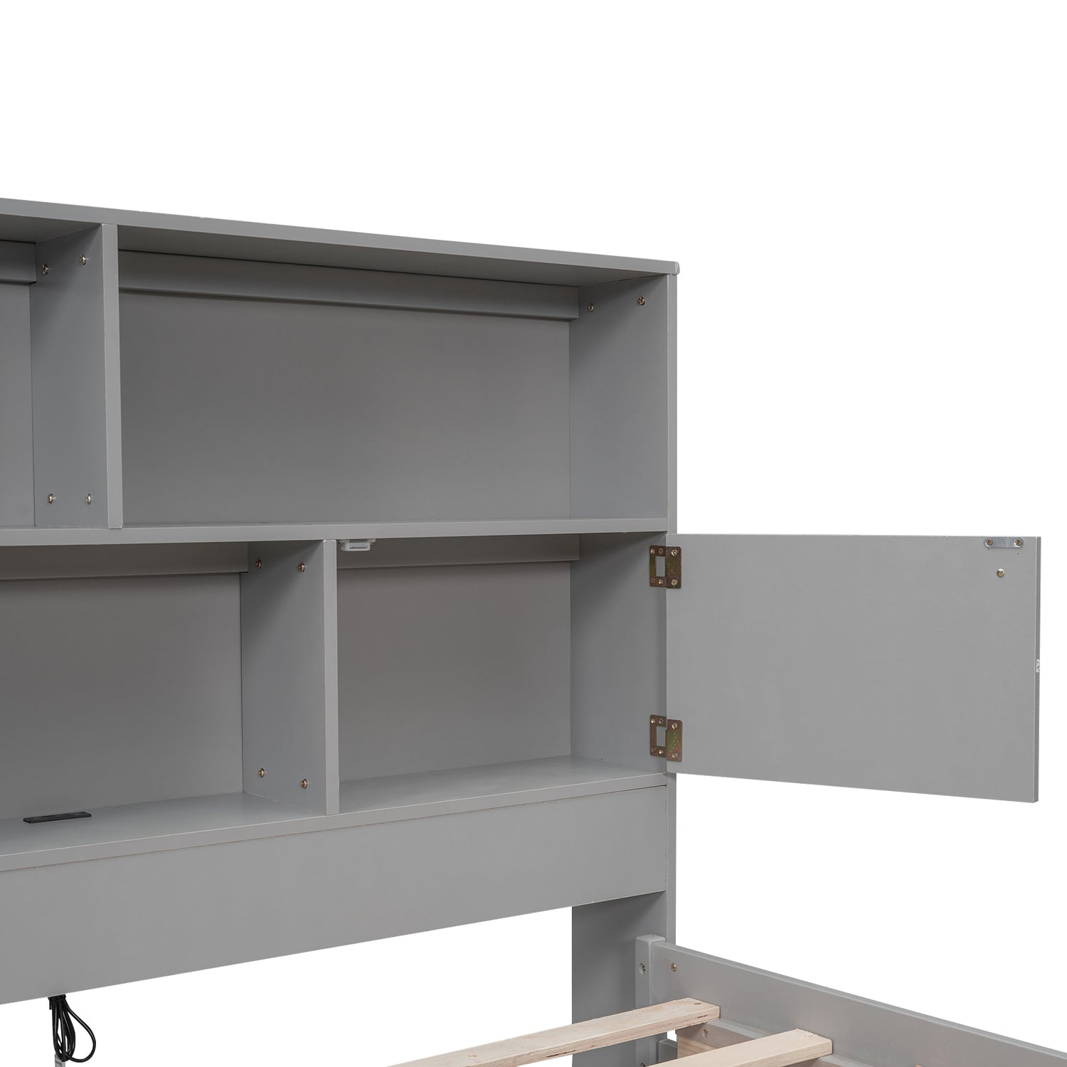 Full Size Platform Bed with Storage Headboard, Charging Station and 4 Drawers, Gray