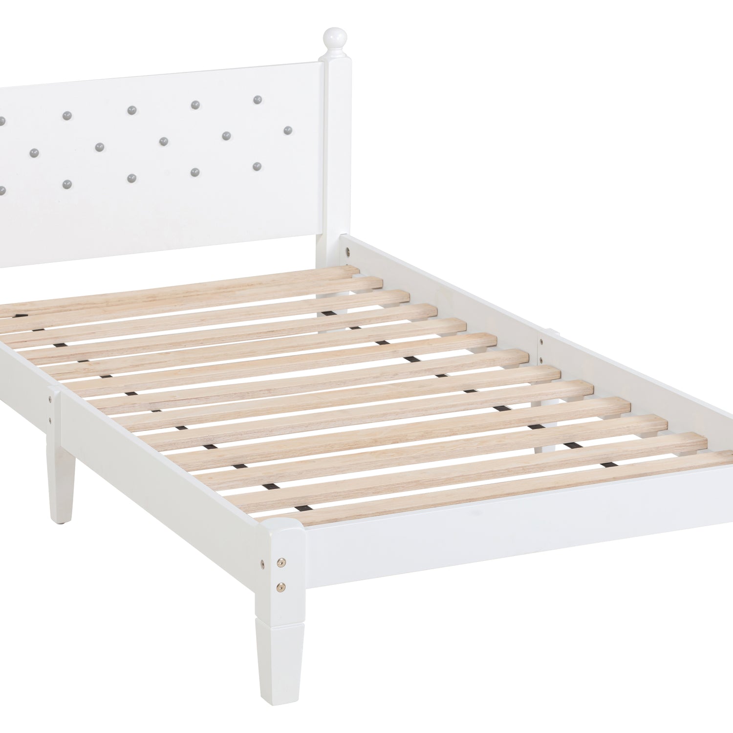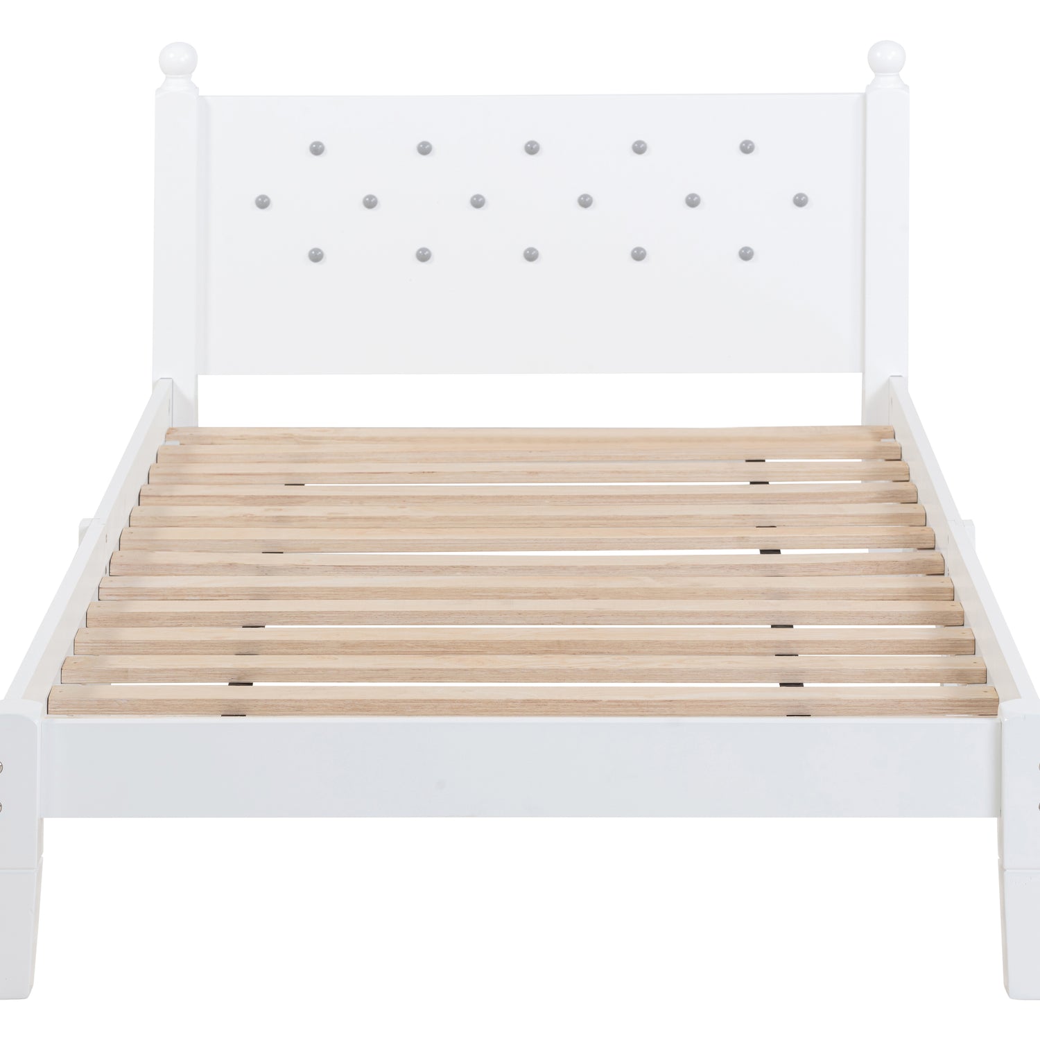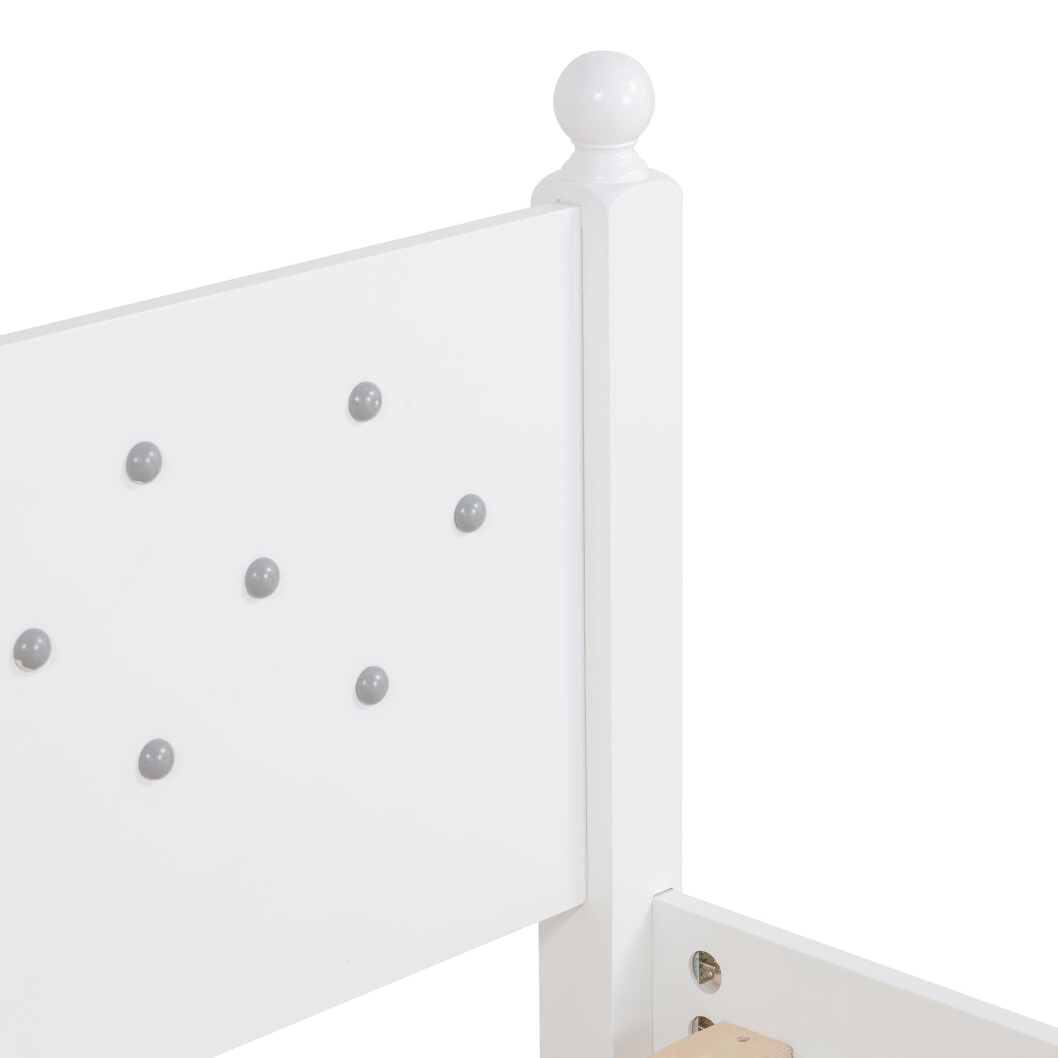 Twin Bed with Button-Decoration Headboard, with Bed Slats,White