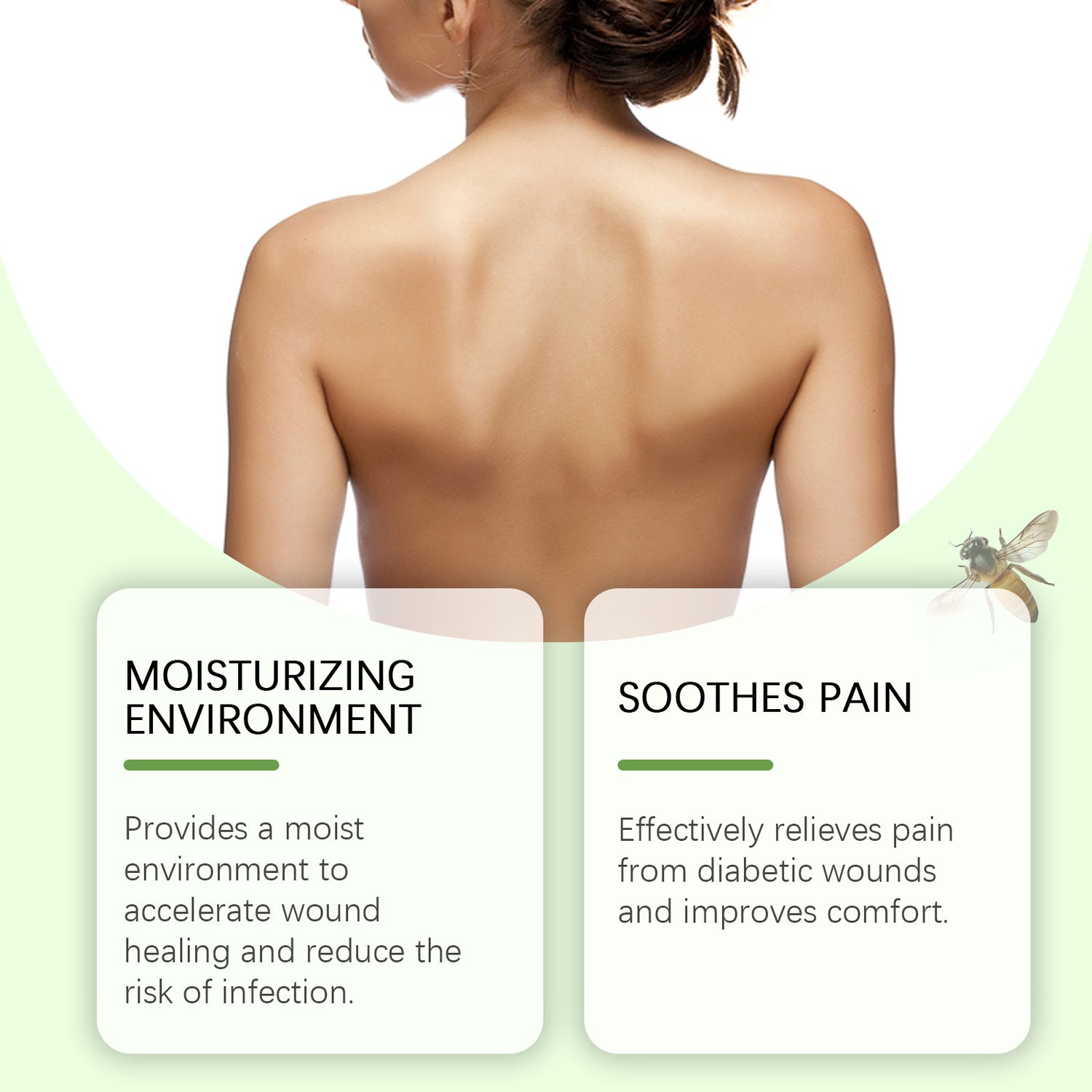 Our Honey Soothing patches contain honey, matrine extract, and 100 extract. It can provide a moist environment, speed up wound healing and reduce the risk of infection. Effective relief of diabetic wound pain, improve comfort. Its application method is simple: 1. Clean the skin and keep it dry; 2. Remove the patch, peel off the adhesive back, and carefully cover the affected area. Make sure the patch fits the area perfectly. 3. Wait 6-8 hours, then gently peel off. Provides a moist environment to promote wound healing.